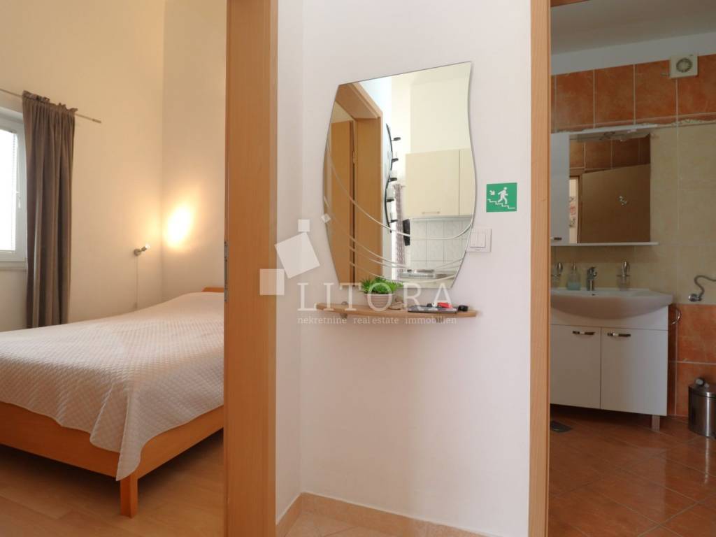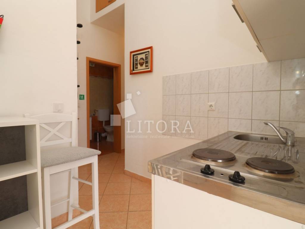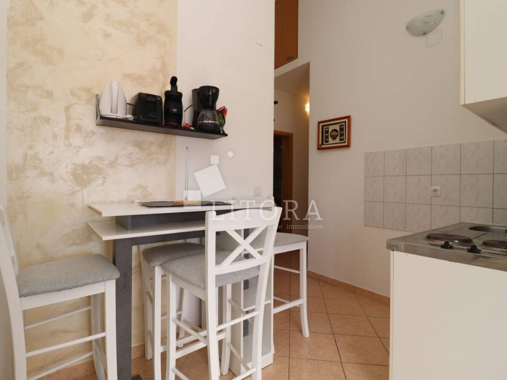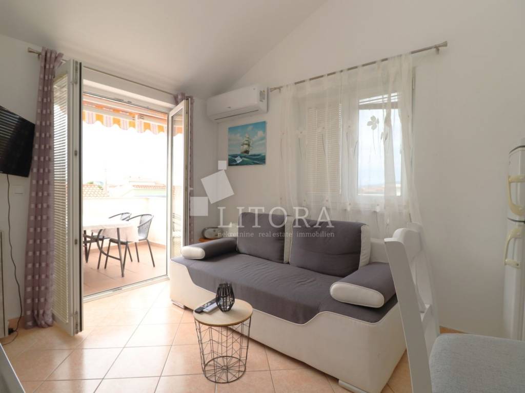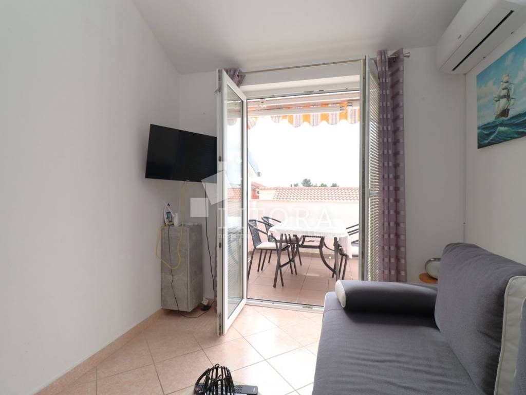 Srima – In a quiet part of Srima, a fully furnished one-bedroom apartment with a total area of 32.93 m² is for sale, located in the top floor of a small residential building. The apartment consists of an entrance hall, bathroom, bedroom, and an open-plan kitchen with a living area that opens onto a pleasant terrace. It is southwest-oriented, ensuring plenty of natural light and a comfortable atmosphere throughout the day.