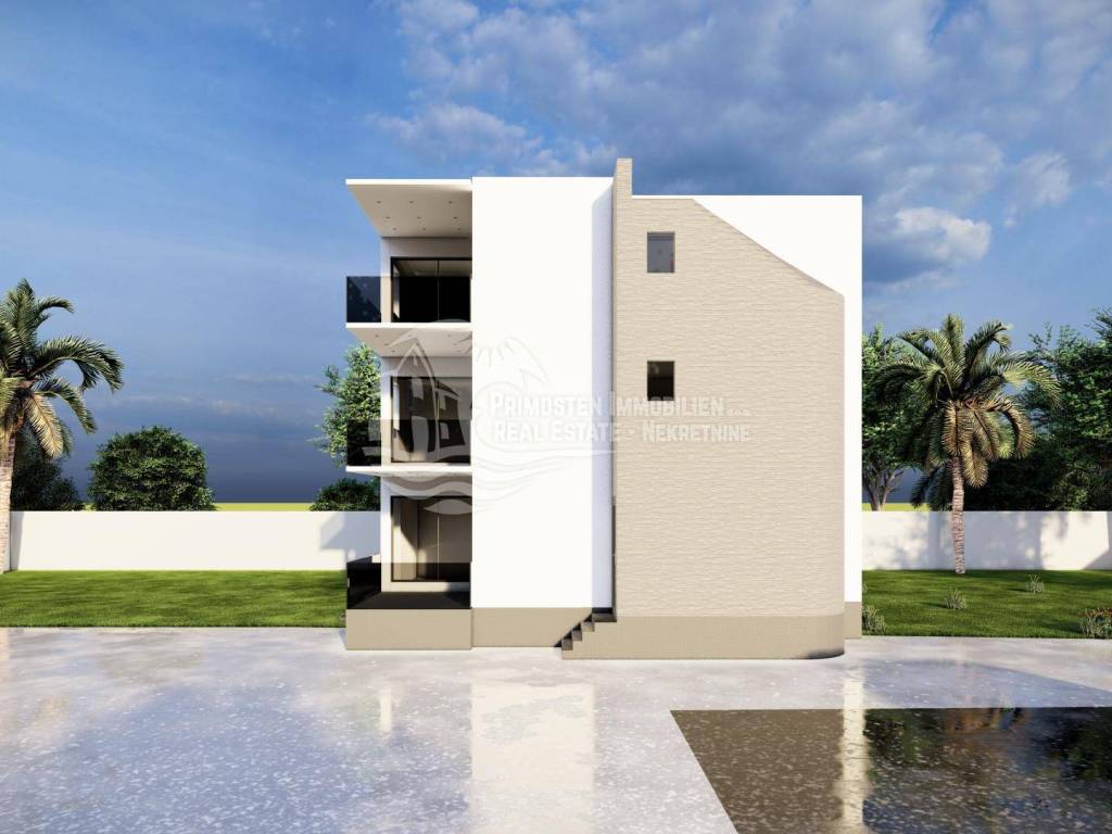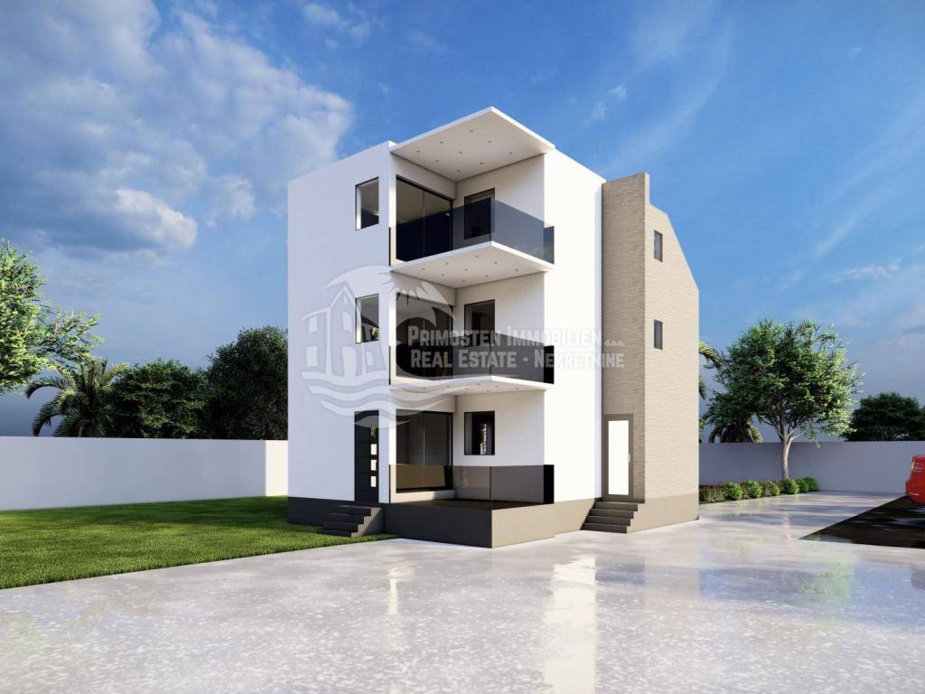 JEDINSTVENA PRILIKA! Posredujemo u prodaji građevinskog zemljišta sa ishođenom pravomoćnom građevinskom dozvolom za koji je izrađen glavni projekt. Ovo građevinsko zemljište se nalazi u Vodicama u blizini svih turističkih sadržaja, a udaljeno cca 1000 metara od mora. Parcela je pravilnog oblika, konfiguracija terena je blagi nagib. Sva potrebna infrastruktura nalazi se u neposrednoj blizini, a pristupni putevi su asfaltirani. Prema projektu i pravomoćno ishođenoj građevinskoj dozvoli na parceli se može izgraditi manja stambena zgrada sa tri stambene jedinice na tri etaže sa ravnim krovom.