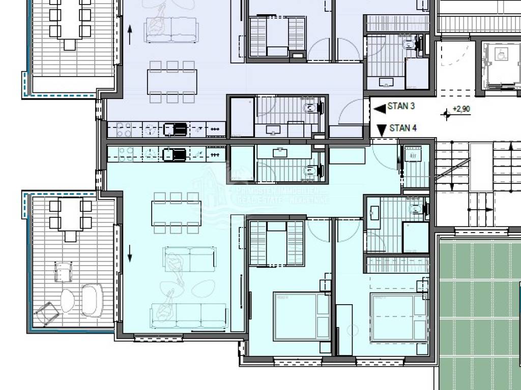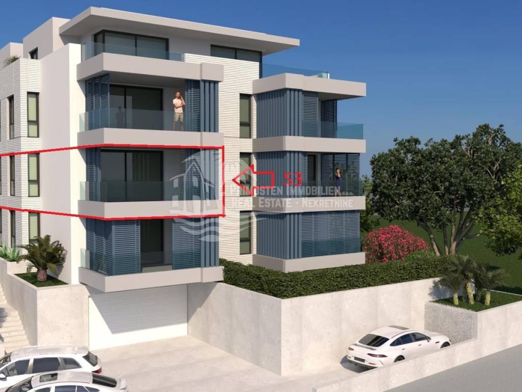 Primošten Real Estate offers you a first-class construction project. The ground floor apartment, currently under construction, is located in a building with a total of twelve residential units and is only 100 m from the famous Primošten beach. Thus, it is in an absolutely prime location. The living space of this modern and high-quality apartment is 96.76 m² and offers an eat-in kitchen, hallway, two bedrooms, two bathrooms, a 14.30 m² covered balcony with unobstructed sea views, and a 94.60 m² garden. It cannot be emphasized enough that the location and the sea views are an absolute rarity. The technical features include underfloor heating in the bathrooms, electric blinds, and air conditioning. Furthermore, the building has an elevator and is therefore also wheelchair accessible. The purchase price includes a parking space and a communal pool. Completion of the construction work is scheduled for the end of 2026. We are available at any time for detailed information.