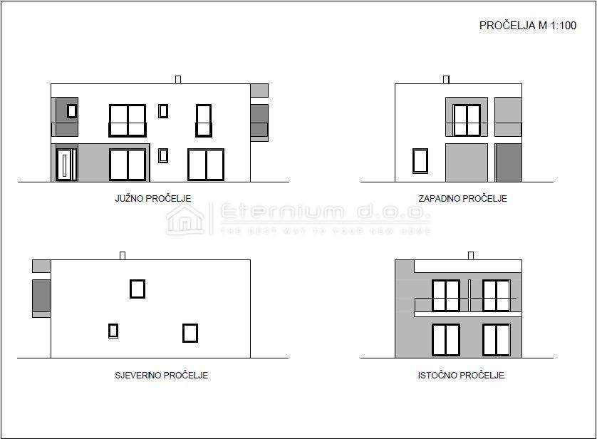 U slikama možete vidjeti tlocrte kao i pročelja vile. Struja ,voda i telefon na ulici su uz česticu.
