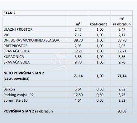 For sale is apartment S2, located on the ground floor of the building. The apartment has a total net usable area of ​​80.03 m2. It consists of a kitchen, living room and dining room, hallway, two bedrooms, bathroom and toilet. The living area opens onto a terrace. Apartment S2 has a storage room in the basement and one outdoor parking space. The planned completion of construction is in summer 2026, and payment is in stages, depending on the level of construction.