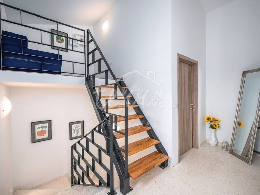 From the hallway, we take the stairs to the gallery, where there is a sofa, which can also be used as another room.