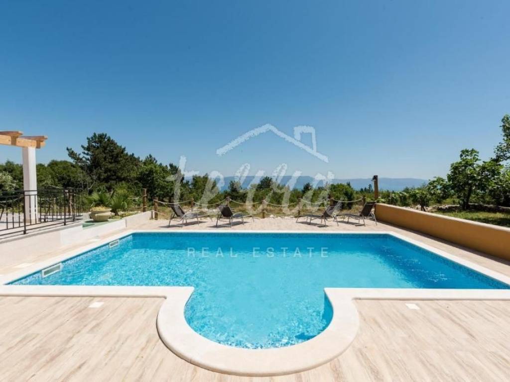 Labin, surroundings, house with a swimming pool and a beautiful view of the sea