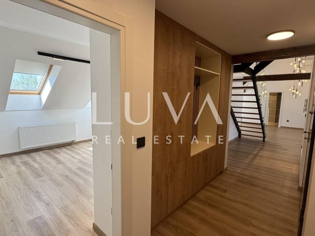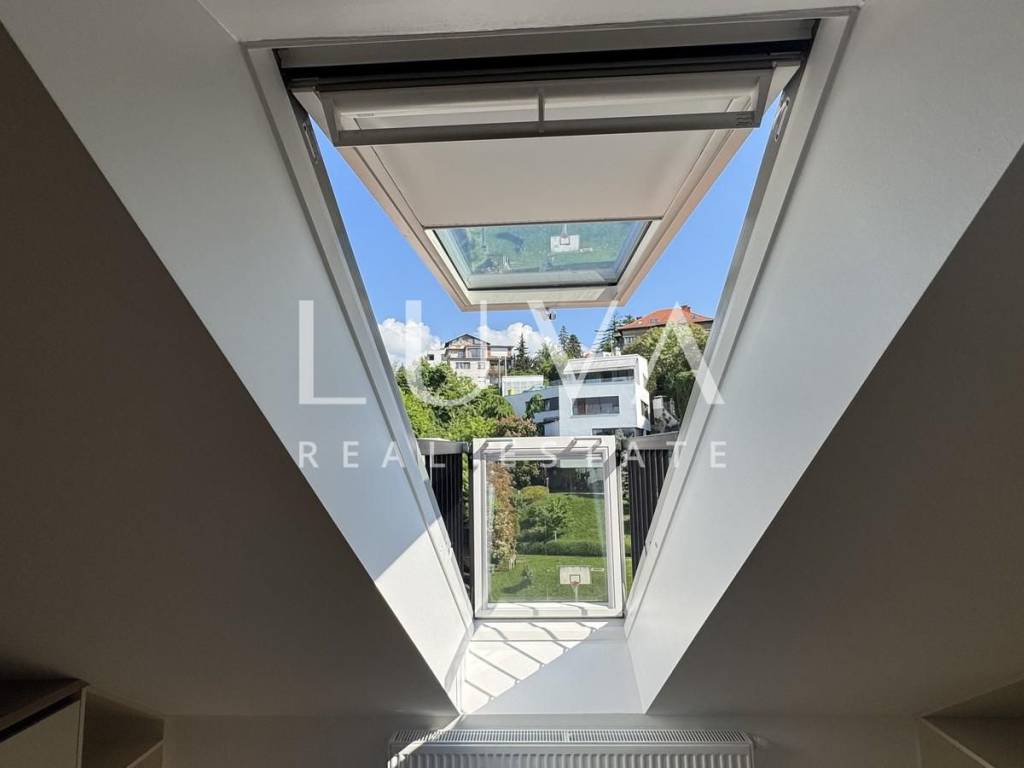 Prostor je opremljen vrhunskom stolarijom izrađenom po mjeri te kvalitetnim Velux prozorima. Smješten je na trećem katu (bez lifta).