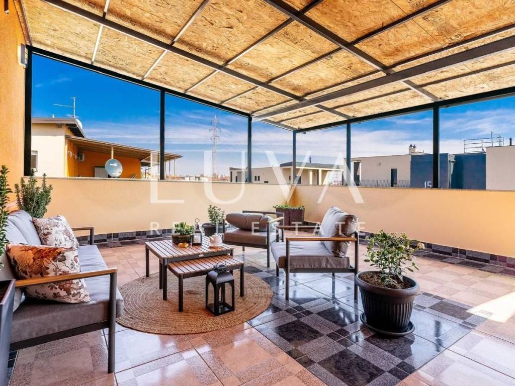 The apartment is luxuriously furnished and consists of a spacious open-plan living room and kitchen, bathroom, bedroom, and a large covered terrace that could be closed with additional investment.