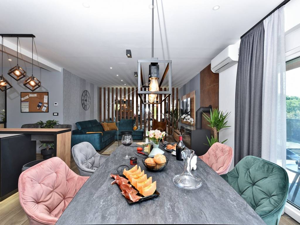Nelle immediate vicinanze di Pola, la città più grande della Regione istriana, vendiamo un appartamento di lusso con wellness al primo piano di un edificio di nuova costruzione, a soli 150 m dal mare e dalla prima spiaggia.