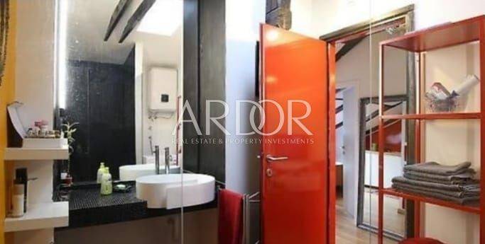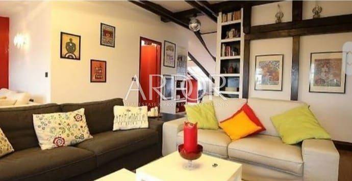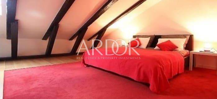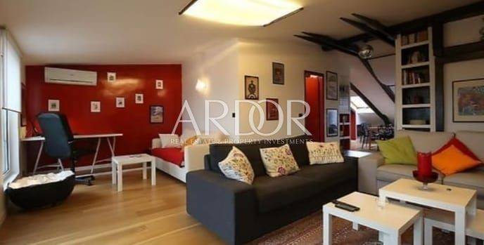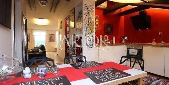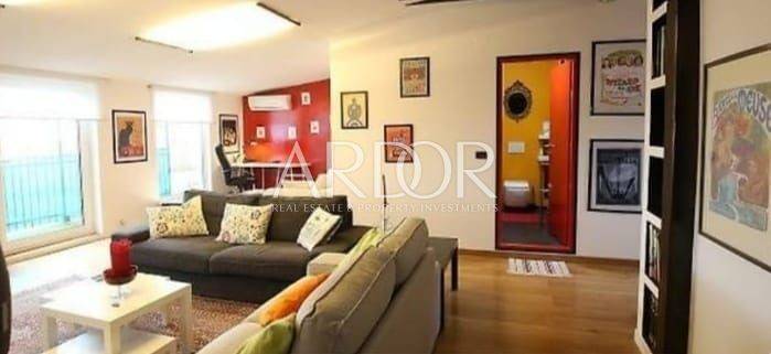 Centro di Rijeka, appartamento in vendita in un attico alto di 116 m2. L'appartamento è composto da due camere da letto, soggiorno con uscita sul balcone che si estende per tutta la lunghezza dell'appartamento, cucina con zona pranzo, bagno, disimpegno e cantina di 5 mq situata al piano terra. L'appartamento climatizzato è ben arredato e arredato con gusto e viene venduto arredato. È in una posizione eccellente vicino a tutti i servizi necessari come negozi, ufficio postale, banca, scuola, scuola materna, trasporti pubblici...