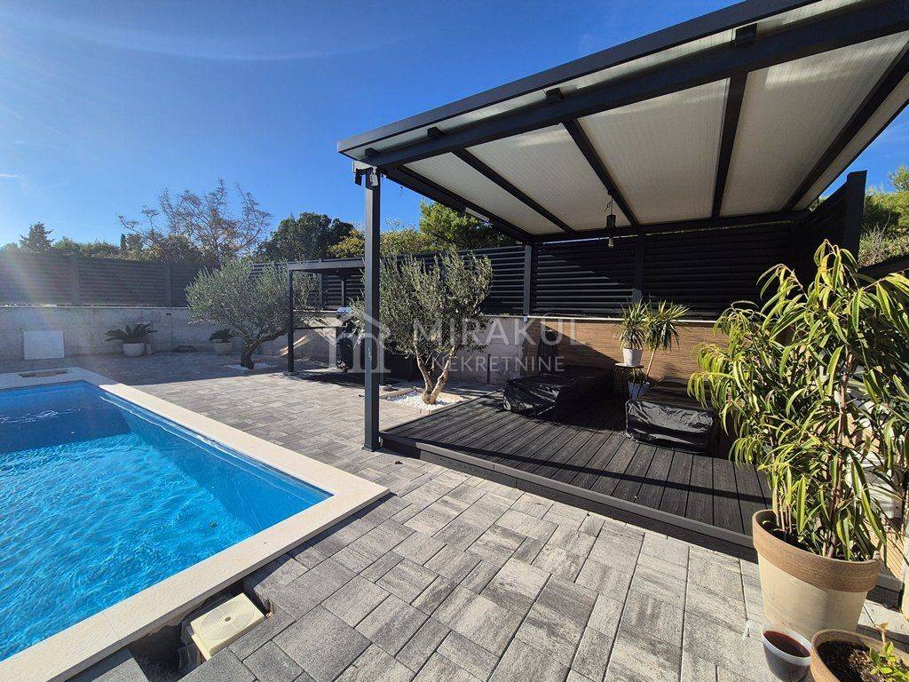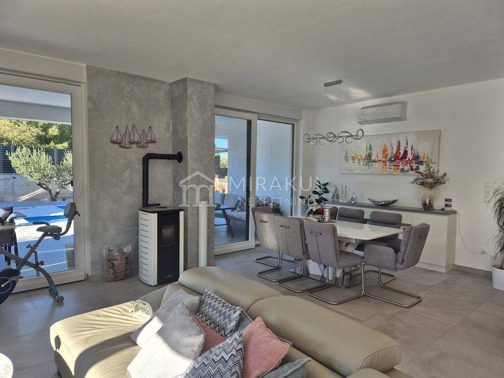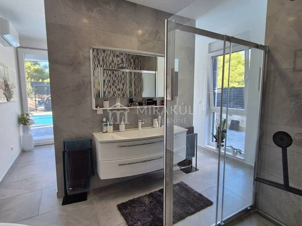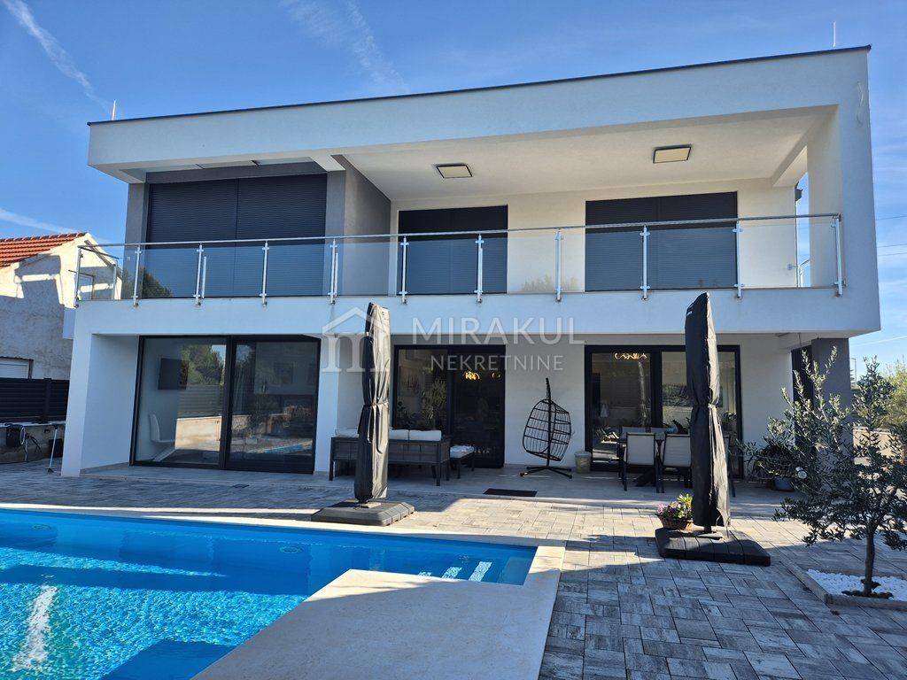A modern villa with a swimming pool is for sale in a quiet location in Pirovac.