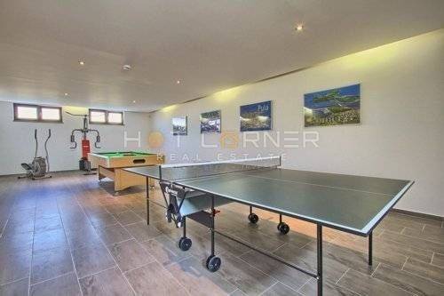 Inoltre, nel giardino della villa ci sono: camino grill coperto con tavolo, parcheggio per due veicoli e altri due posti auto, parco giochi multifunzionale per bambini, campo da minigolf, terreno multifunzionale 16x8 e vasca idromassaggio sulla terrazza.