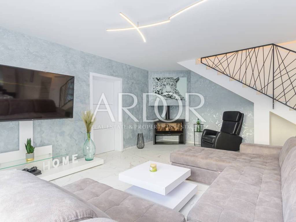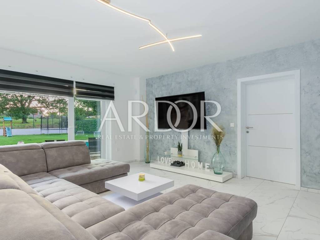 Una bellissima villa moderna si trova nel piccolo villaggio istriano di Juršići e ha tutto il necessario per la vita o per la tua vacanza perfetta, una superficie di 167 m2, un ampio giardino recintato con piscina privata (40 m2) e un bellissimo terrazza con barbecue.