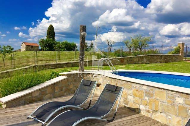 La villa è arredata magnificamente con molto calore e fascino, utilizzando materiali locali e tecniche tradizionali. Sebbene la tradizione sia preservata nelle pareti in pietra a vista, nei pilastri che sostengono il soffitto e nei solidi mobili in legno, ci sono tutte le necessità moderne che includono aria condizionata, comfort moderni e bagni splendidamente decorati che offrono una confortevole atmosfera rurale con tutti i vantaggi della tecnologia moderna. La stessa cura e attenzione sono instillate nel terreno e nel giardino. L'ampio giardino è costellato di dettagli interessanti come un vecchio aratro contadino, che circonda la casa e conduce ad un'invitante piscina privata. Ci sono anche olive mature, cespugli di fiori ed erbe profumate con una bellissima vista da ogni angolazione. La grande loggia sopra la casa principale è decorata con un grande tavolo da pranzo e un autentico barbecue in muratura per i vostri deliziosi pasti all'aperto - c'è anche un'abbondanza di prodotti freschi disponibili in questa parte dell'Istria che vi offrono ispirazione. I più piccoli potranno divertirsi nel loro parco giochi, e ci sono anche calcio, badminton e pallavolo con 3 biciclette a completare l'azione. La villa offre vera pace, separazione e privacy con il meglio di una natura bellissima e incontaminata.