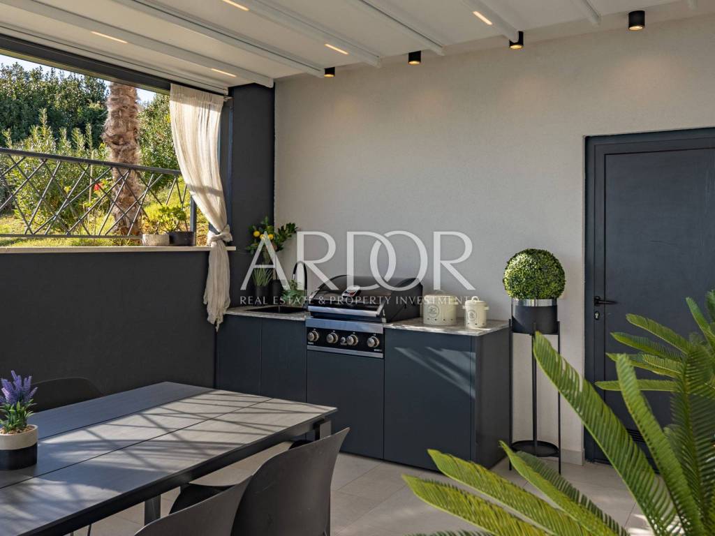 In vendita appartamento duplex di lusso di 294 m² complessivi, composto da un’unità al piano rialzato in nuova costruzione e da locali accessori al piano seminterrato. La proprietà comprende anche un giardino di 299 m² con cortile curato, ampia terrazza e parcheggio.