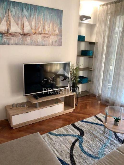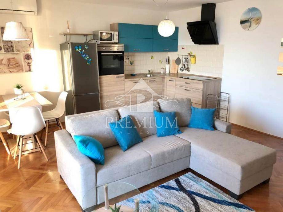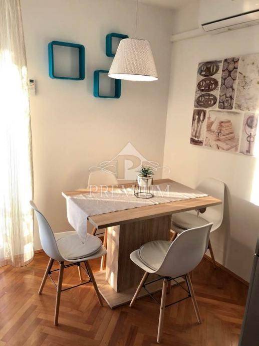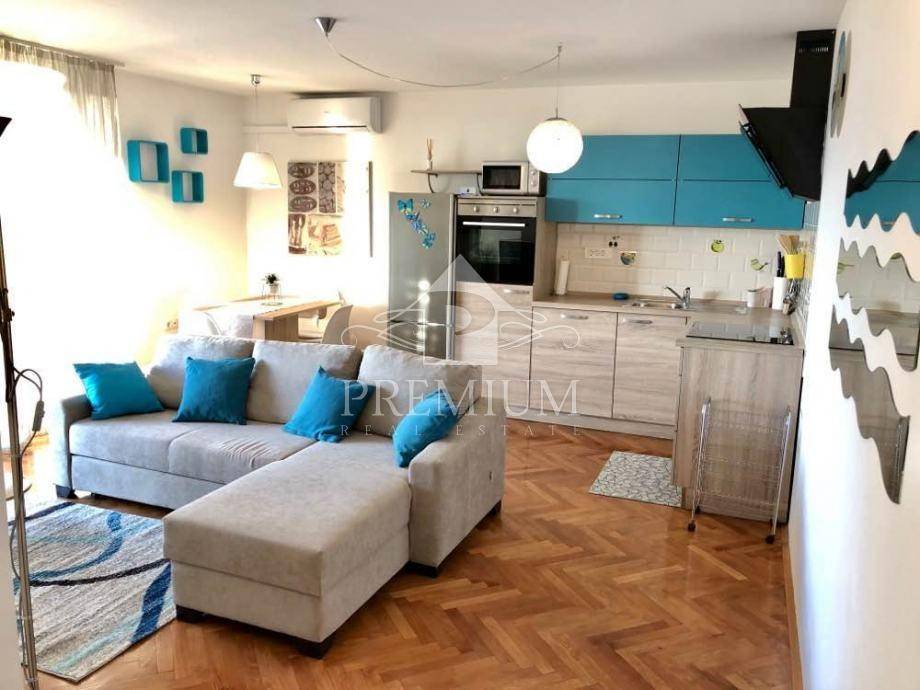Si compone di un soggiorno con accesso a un balcone con una splendida vista sul mare. Una camera da letto è più grande, l'altra più piccola, c'è anche un bagno e una toilette separata, la zona giorno è orientata a sud-ovest, quindi molto soleggiata, e la camera da letto principale è esposta a est.