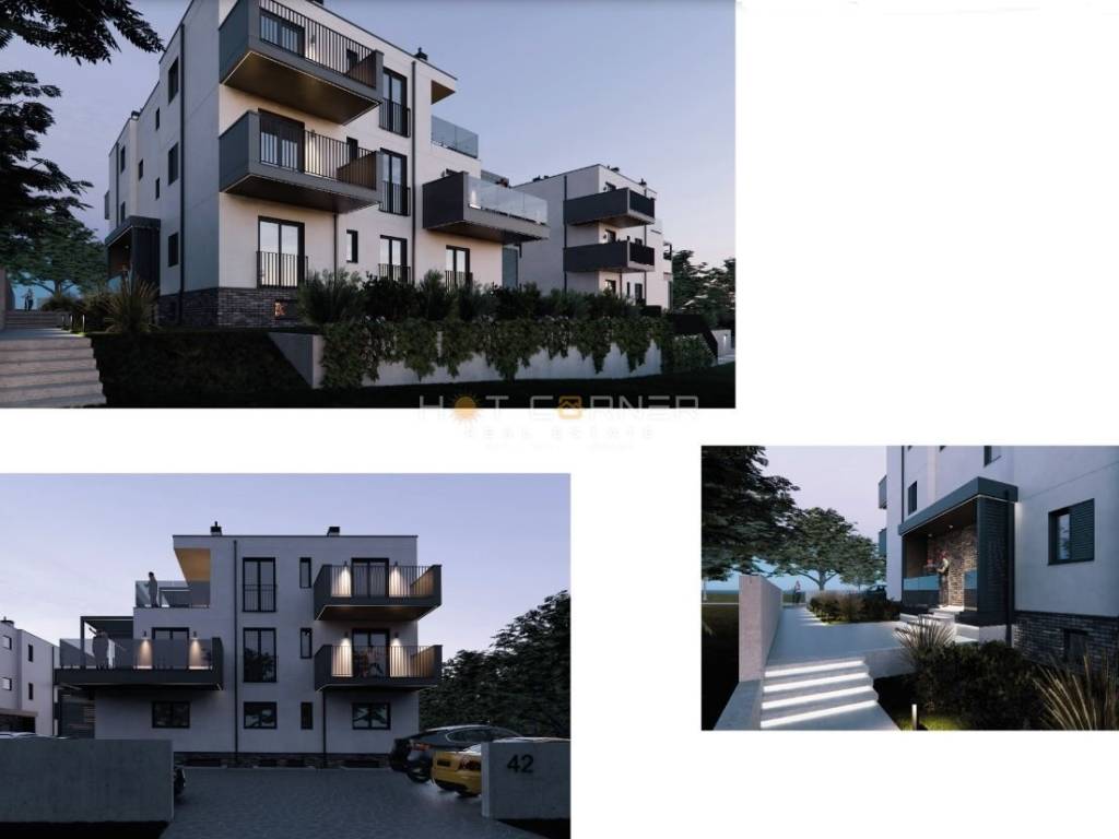 Medulin, in una posizione unica, a soli 50 m dalla prima spiaggia, da cui inizia una bella passeggiata lunga 1 km fino a Bijeca, la famosa spiaggia di sabbia di Medulin, in vendita appartamenti di lusso situati in due edifici più piccoli di design moderno.