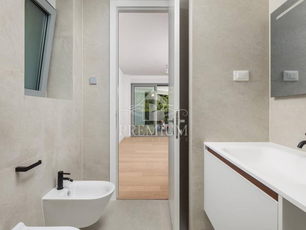 In un edificio di 9 appartamenti in una posizione molto vicina al mare e alla spiaggia principale di Opatija, offriamo un appartamento al piano terra, con posto auto in garage e deposito per biciclette.