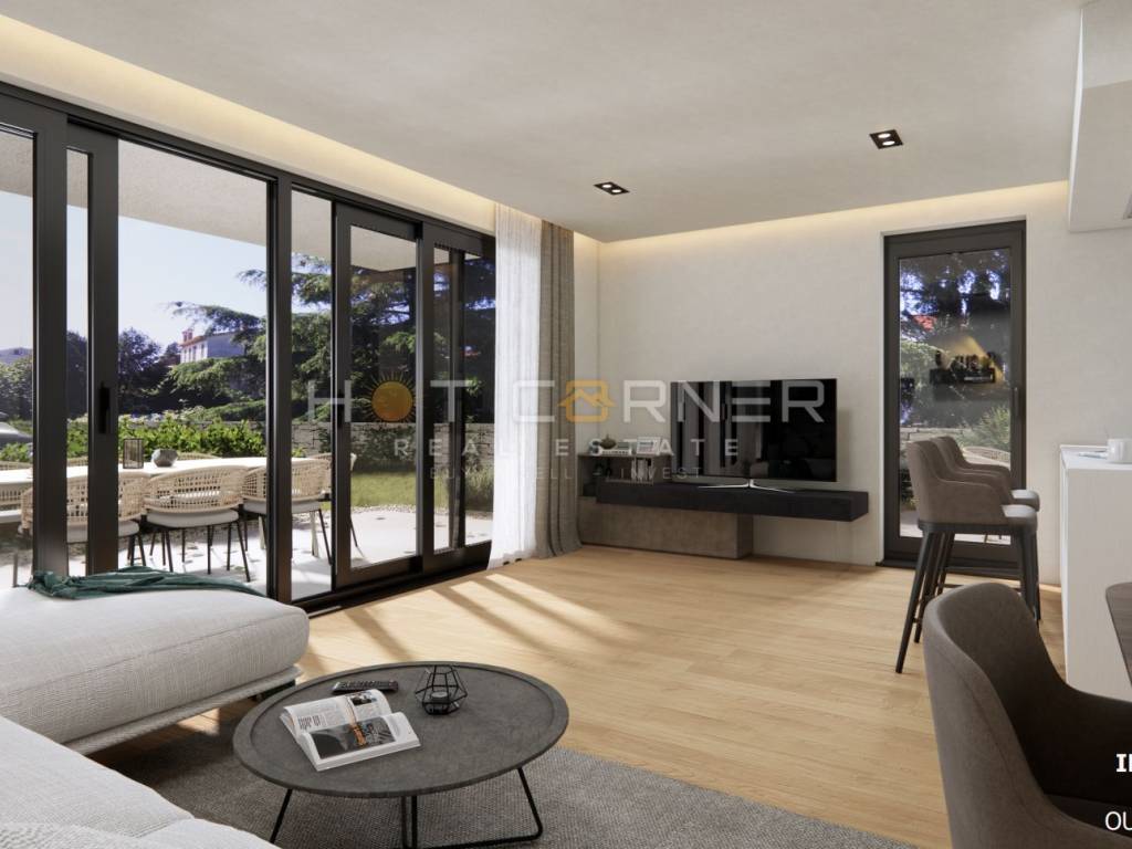 In vendita un appartamento lussuoso e molto spazioso (121,83m2) a Rovigno, situato in una bellissima zona vicino al centro città e vicino al mare. L'appartamento è composto da 121,83m2 di spazio abitativo, un posto auto in garage (13m2), un giardino (40m2) e una cantina (6,41m2).
