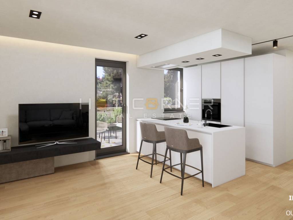 L'appartamento viene venduto chiavi in mano e sono disponibili opzioni di arredamento come mostrato nella visualizzazione.