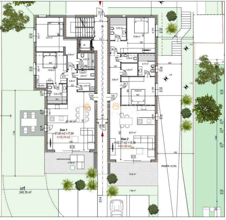 Gli spaziosi appartamenti sono progettati con cura e costruiti con materiali di alta qualità.