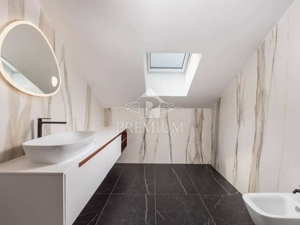 In un edificio di 9 appartamenti in una posizione molto vicina al mare e alla spiaggia principale di Opatija, offriamo un appartamento al 2° piano, con posti auto in garage e giardino, oltre a deposito biciclette.