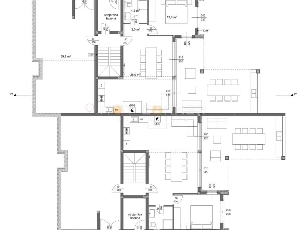 2 case in vendita vicino a Dignano. Ognuno ha una superficie in pianta di circa 120m2. Il piano terra è composto da soggiorno, cucina e sala da pranzo, 1 camera da letto, bagno, terrazzo. Il piano superiore è composto da 3 camere da letto, 2 delle quali con proprio bagno, soggiorno, cucina, sala da pranzo, bagno separato e terrazzo. La casa sarà dotata di porte d'ingresso antieffrazione, carpenteria esterna in PVC con persiane, piastrelle in laminato/ceramica di qualità, bagni attrezzati con sanitari, riscaldamento a pavimento, condizionatori inverter, carpenteria interna, ecc...