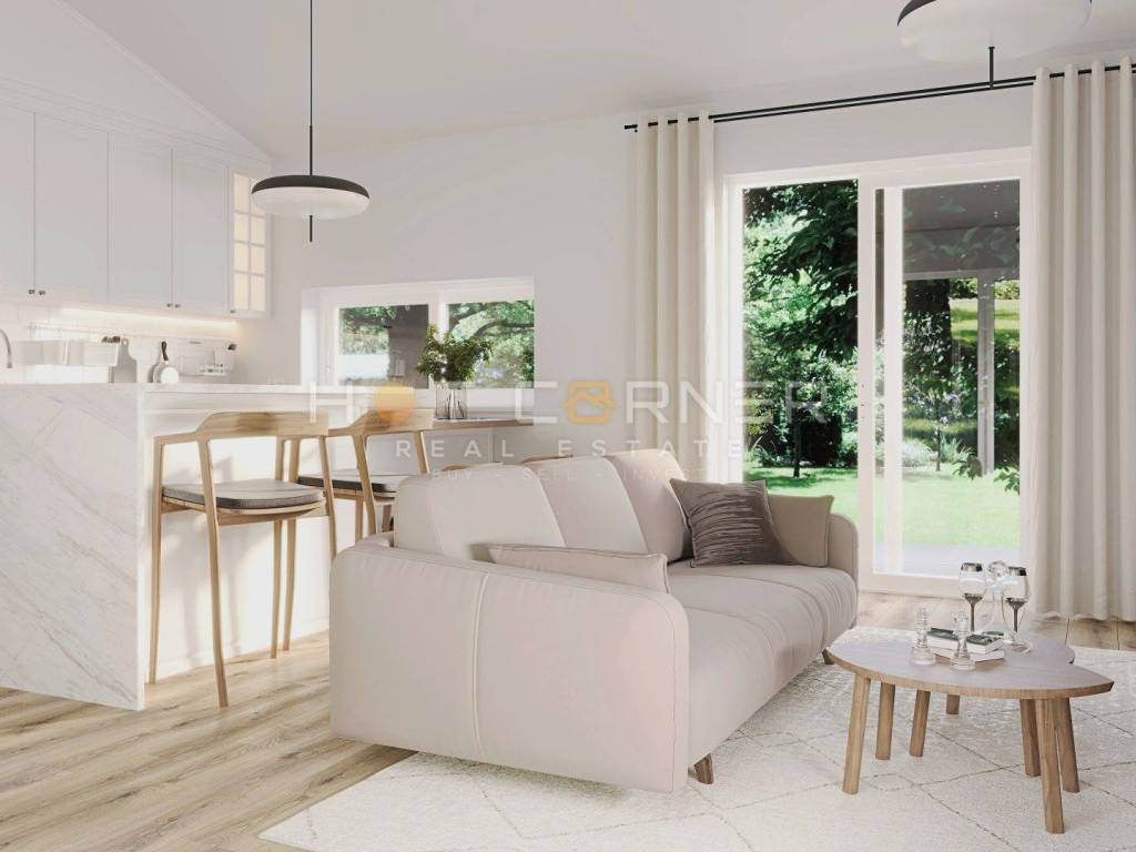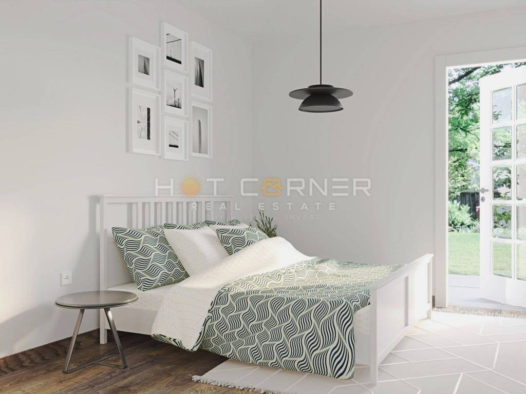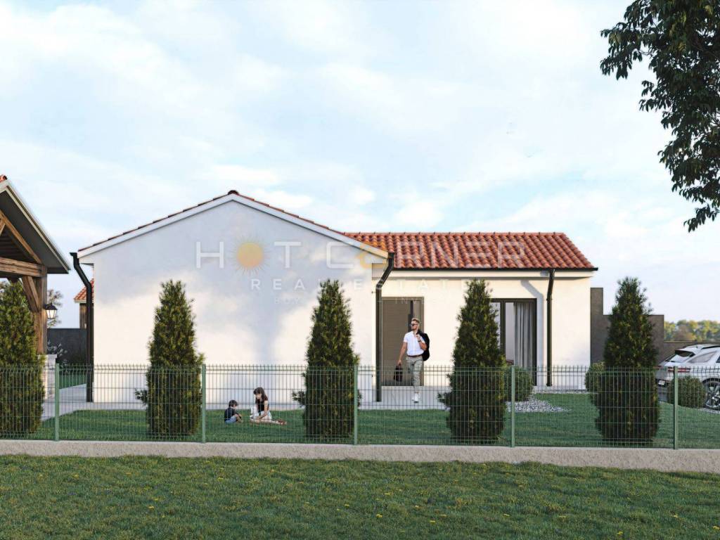 In un piccolo villaggio a 3 km dal paese di Barban e a 8 km dalle prime spiagge, è in vendita una piccola casa a un piano, essenzialmente metà di un duplex, con una superficie abitabile di 70 m2, due camere da letto, 2 bagni, un ampio soggiorno open space con cucina e sala da pranzo. Dotazioni: 3 condizionatori d'aria, camino, riscaldamento a pavimento in tutta la casa.