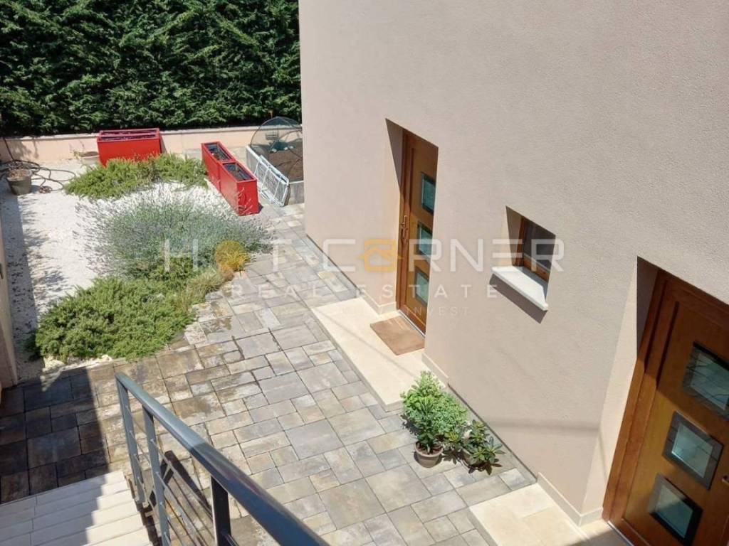 In una bellissima posizione, nel centro più ampio di Pula, in un quartiere tranquillo e incantevole, a poche centinaia di metri dal supermercato Spar, si trova una moderna casa familiare costruita nel 2018, con una superficie abitabile totale di 250 m2, situata su un terreno di 329 m2, con un giardino di 202 m2.