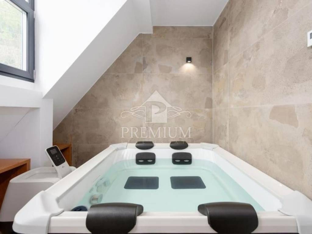 Al piano terra si trova una cucina open space con sala da pranzo e soggiorno, una dispensa e un bagno per gli ospiti. Sullo stesso piano si trova anche una mini area benessere con sauna, grande vasca idromassaggio e zona relax. dal soggiorno si esce sulla terrazza esterna e sul cortile con spazio per il barbecue.
