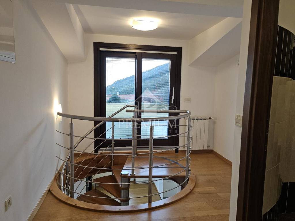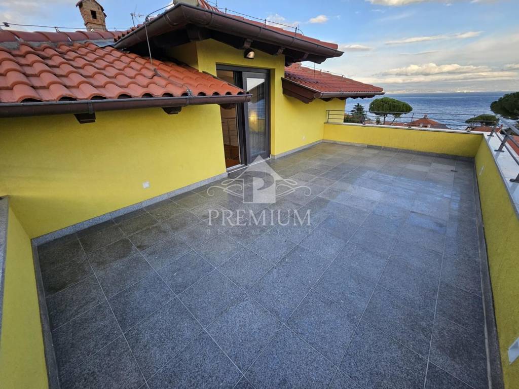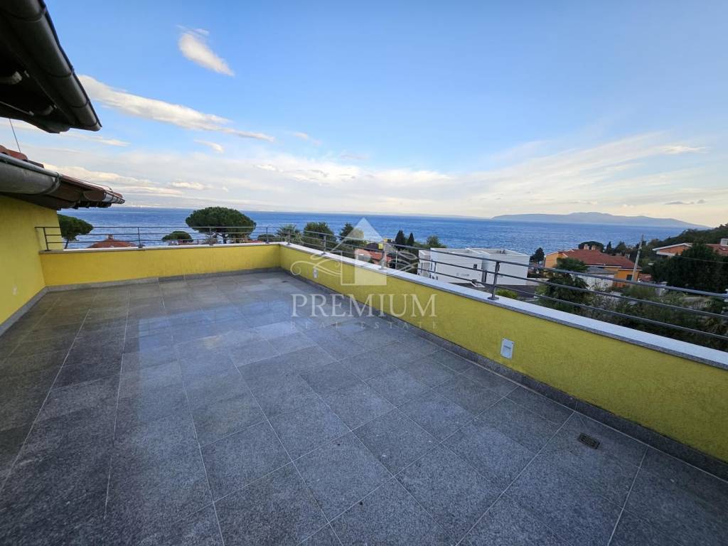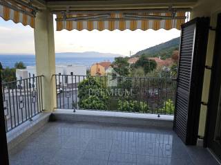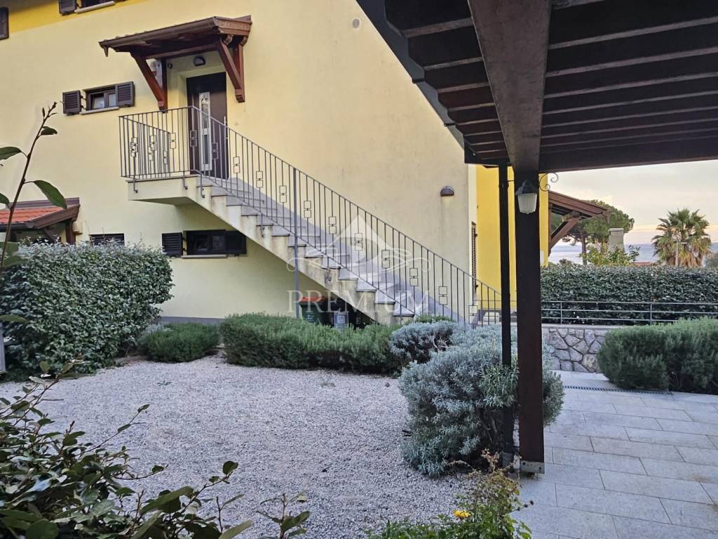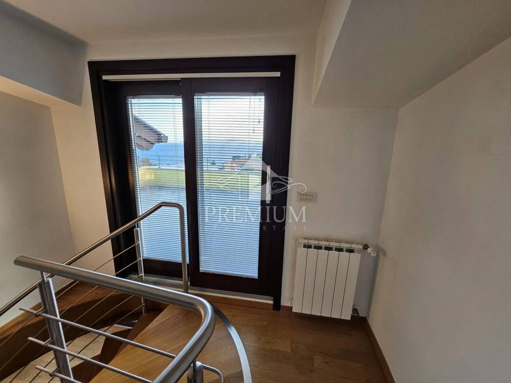 Al primo piano, di 48,32 mq, si trova un ingresso, una cucina, un soggiorno con sala da pranzo, un wc e un balcone. La cucina è attrezzata con elettrodomestici MIELE di alta qualità. Dal soggiorno si accede ad un balcone coperto con vista aperta sul mare. La scala a chiocciola interna conduce al secondo piano, dove si trovano la camera da letto principale, due camere per gli ospiti e un ampio bagno, per un totale di 63,57 m2, il che significa che l'appartamento ha una superficie abitabile totale di 111,89 m2. Al secondo piano c'è una spaziosa terrazza con vista su tutto il Quarnero. Condizionatori d'aria in tutte le stanze e riscaldamento centralizzato.
