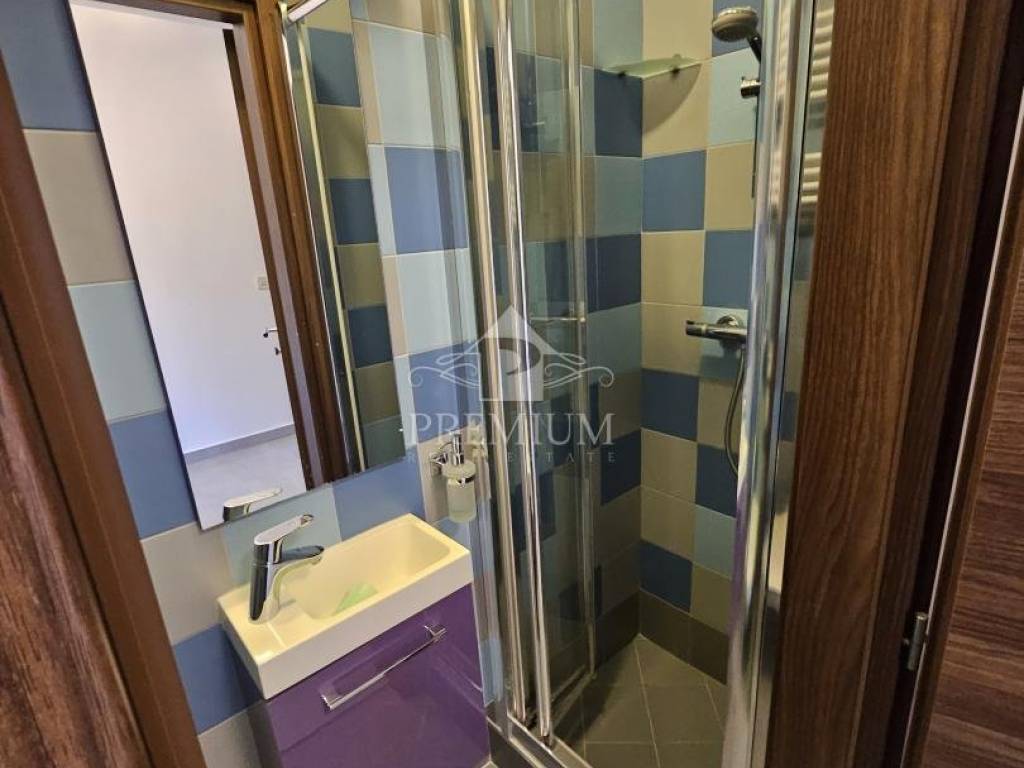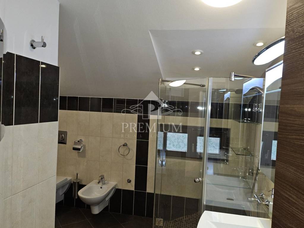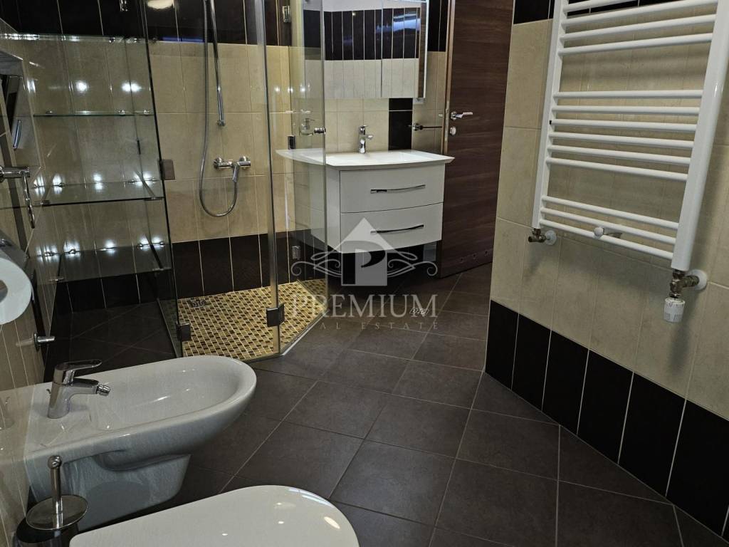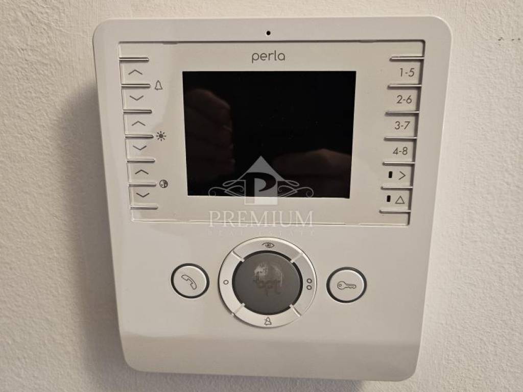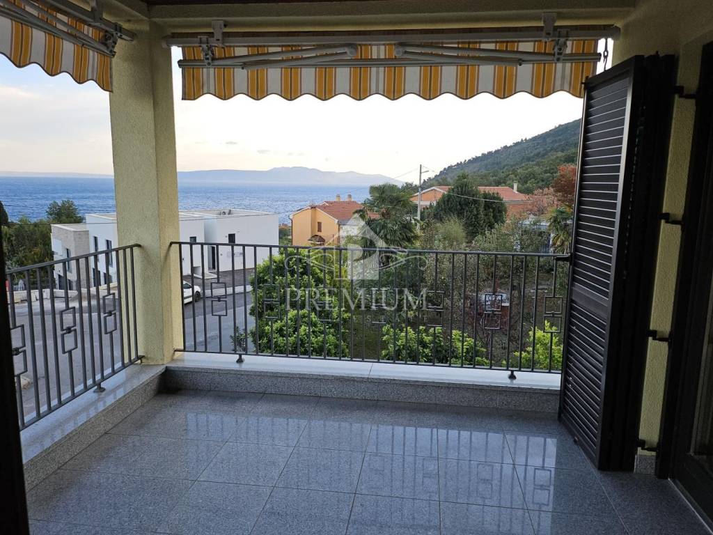 Al primo piano, di 48,32 mq, si trova un ingresso, una cucina, un soggiorno con sala da pranzo, un wc e un balcone. La cucina è attrezzata con elettrodomestici MIELE di alta qualità. Dal soggiorno si accede ad un balcone coperto con vista aperta sul mare. La scala a chiocciola interna conduce al secondo piano, dove si trovano la camera da letto principale, due camere per gli ospiti e un ampio bagno, per un totale di 63,57 m2, il che significa che l'appartamento ha una superficie abitabile totale di 111,89 m2. Al secondo piano c'è una spaziosa terrazza con vista su tutto il Quarnero. Condizionatori d'aria in tutte le stanze e riscaldamento centralizzato.
