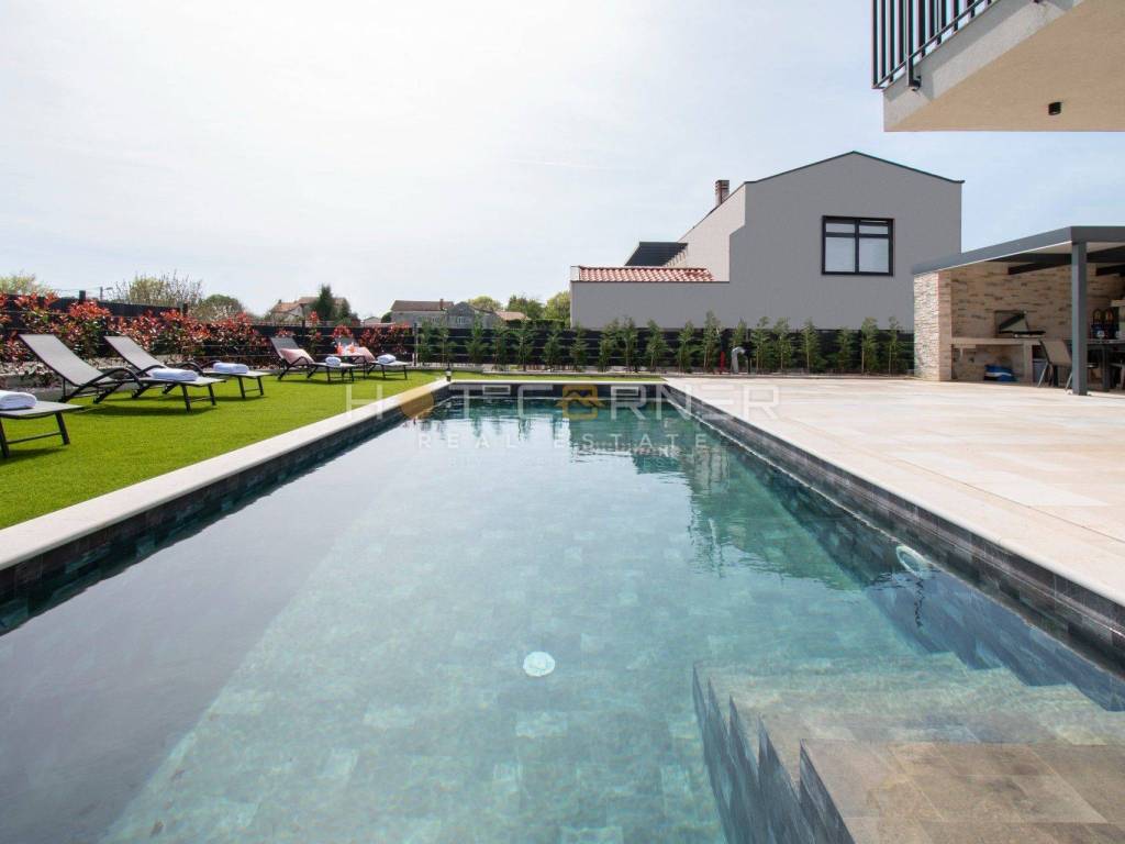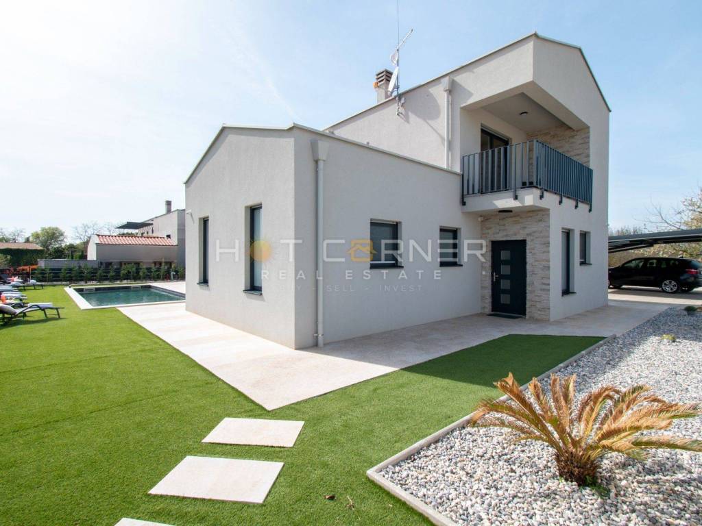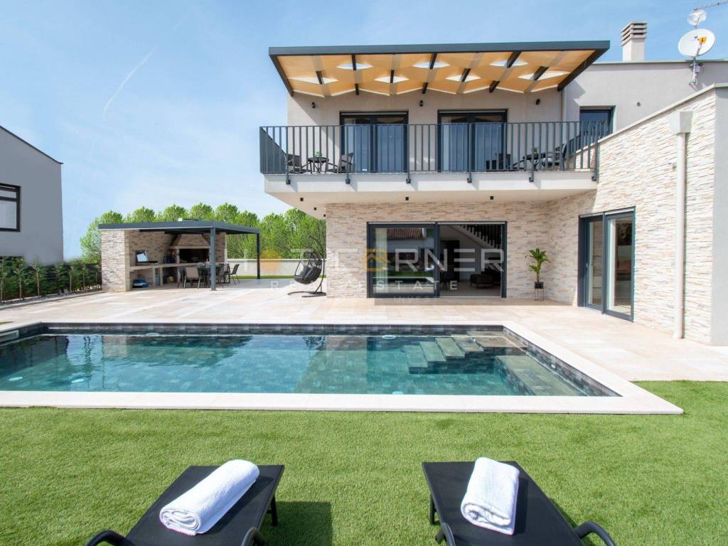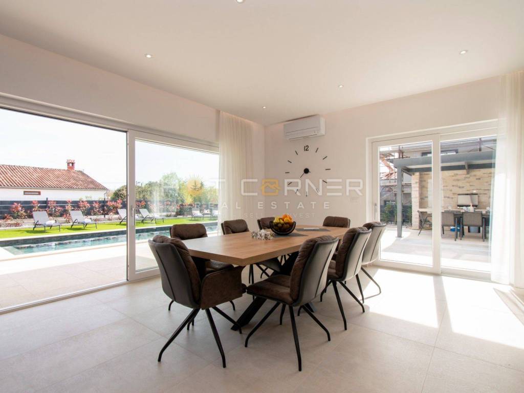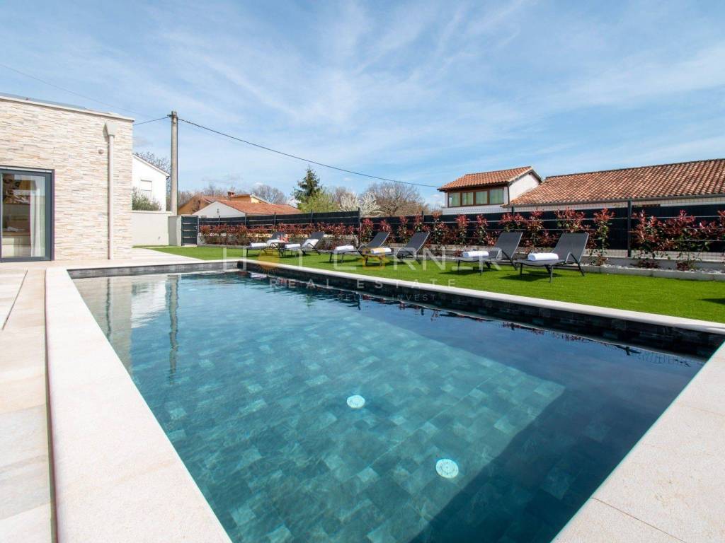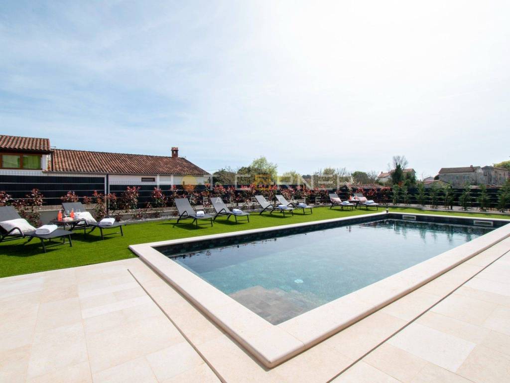 In vendita una bellissima villa con piscina nelle vicinanze di Parenzo. Si estende su 198,82 mq su due piani e una piscina di 36 mq.