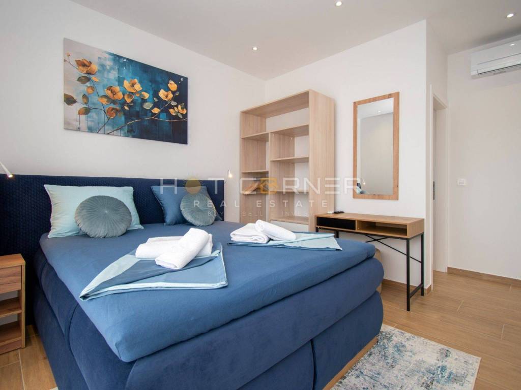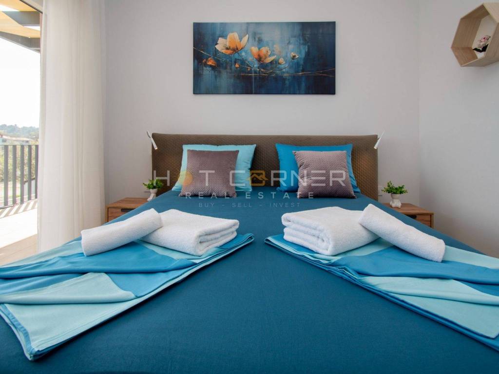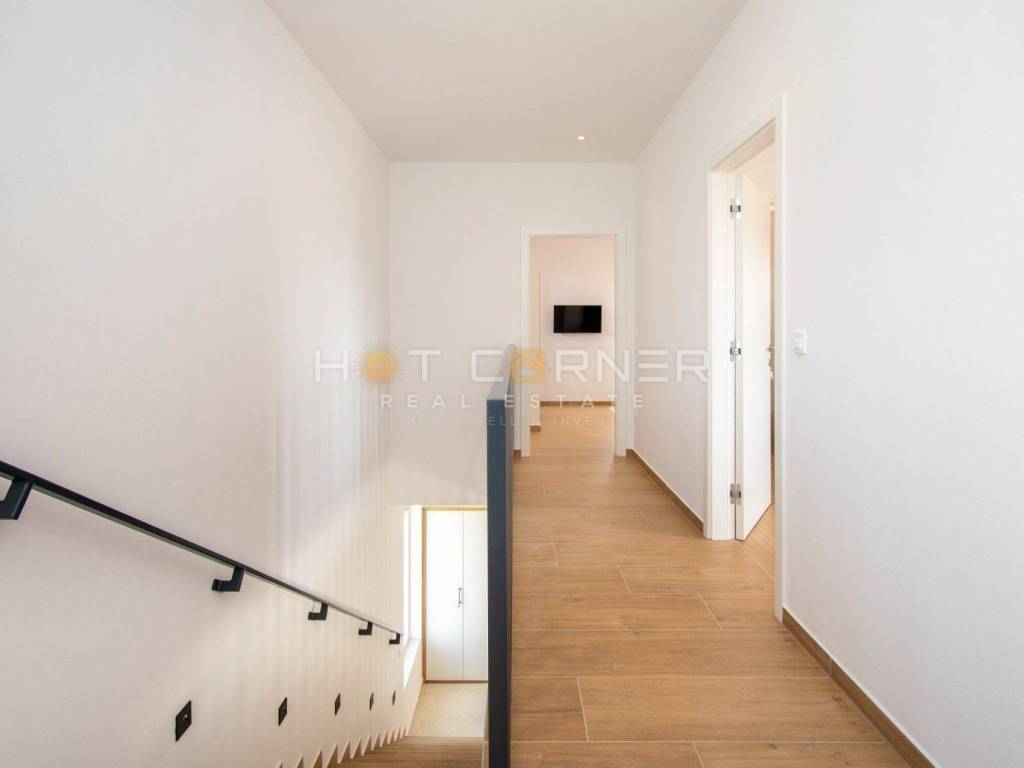 Le scale in pietra conducono al primo piano, dove si trovano tre camere da letto, ciascuna con il proprio bagno e accesso ad un ampio terrazzo.