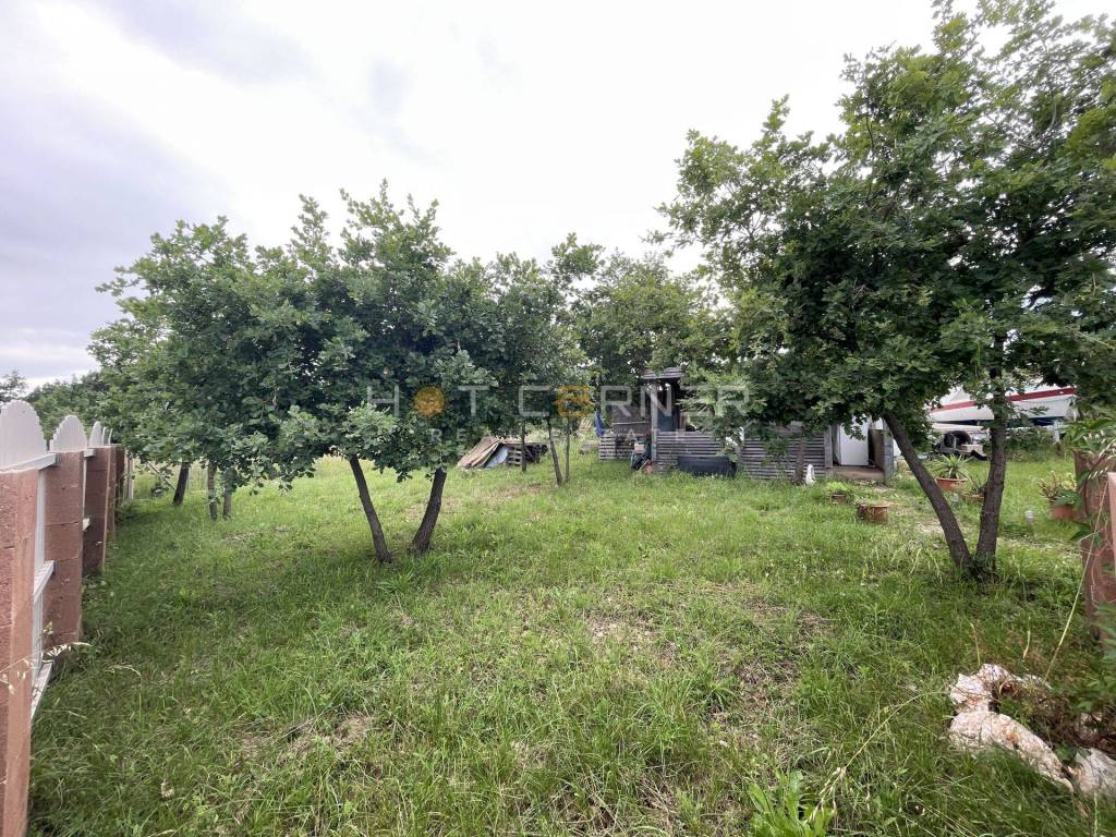Bellissimo terreno agricolo in vendita a Marcana con acqua e strada di accesso. Il terreno è pianeggiante, di forma regolare, circondato in parte da un muro e in parte da una recinzione in filo metallico. Sul terreno c'è anche una casa da campeggio e diversi alberi da frutto.