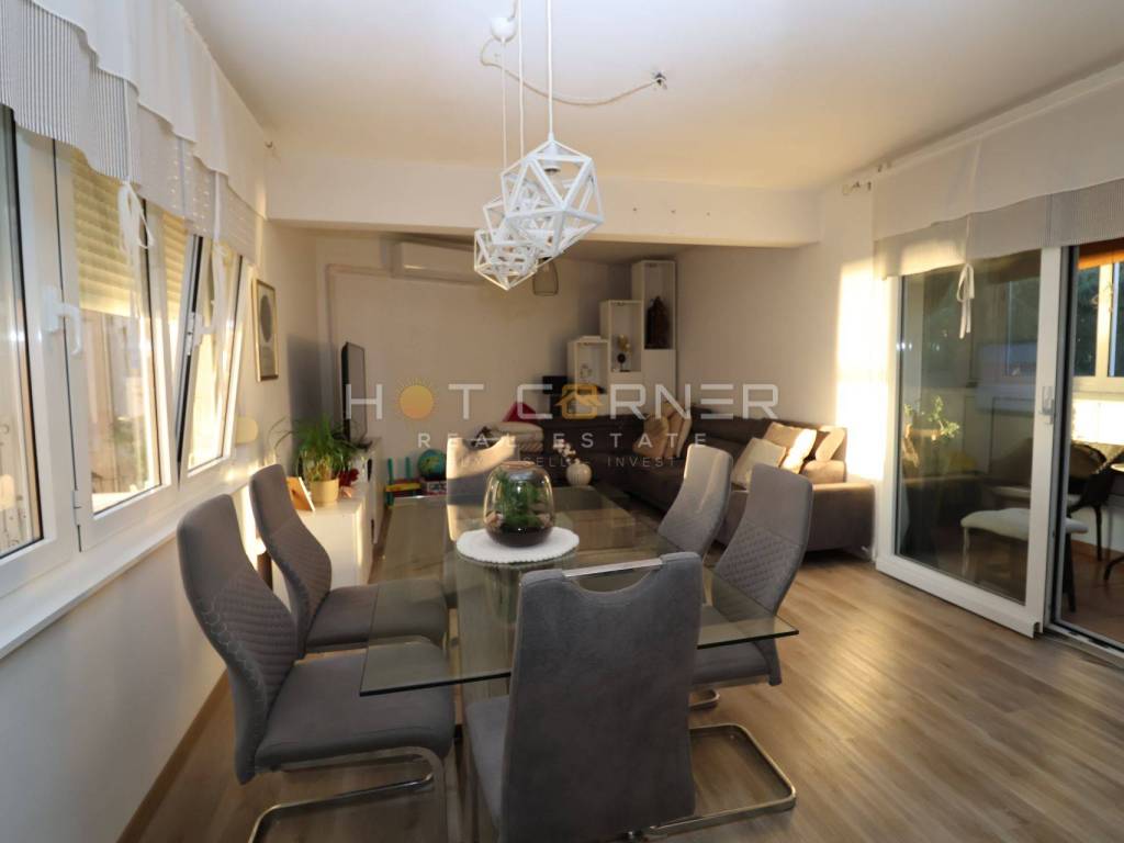 L'appartamento dispone di carpenteria esterna in alluminio con persiane, nuovo laminato nel soggiorno e parquet nelle camere da letto. L'appartamento è dotato di un condizionatore inverter più potente nel soggiorno e, se necessario, vengono utilizzati radiatori norvegesi per il riscaldamento. L'appartamento è dotato di gas di città, che attualmente viene utilizzato per cucinare, ma è dotato anche di stufa a gas per il riscaldamento. Possibilità di installare riscaldamento centralizzato a pavimento a gas. L'appartamento viene venduto semi-arredato.