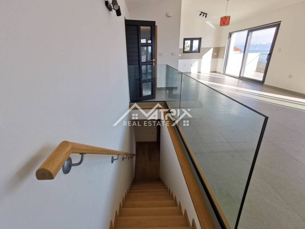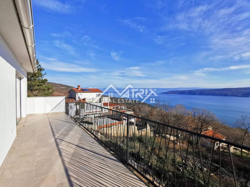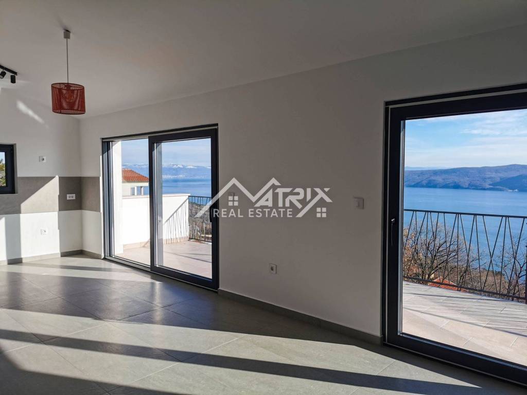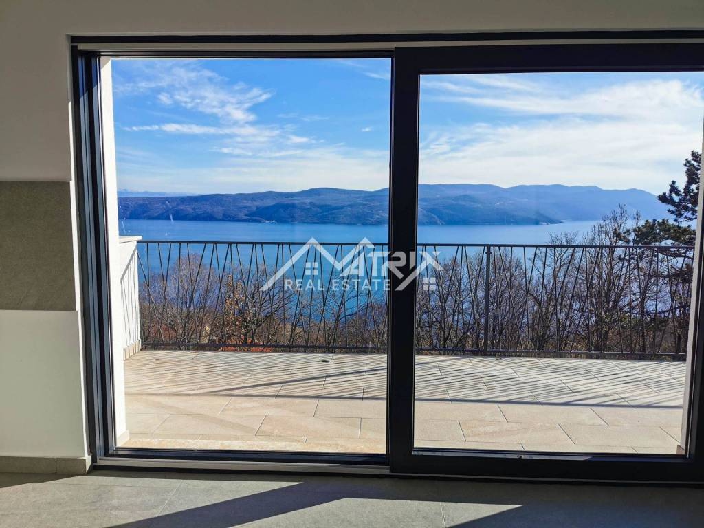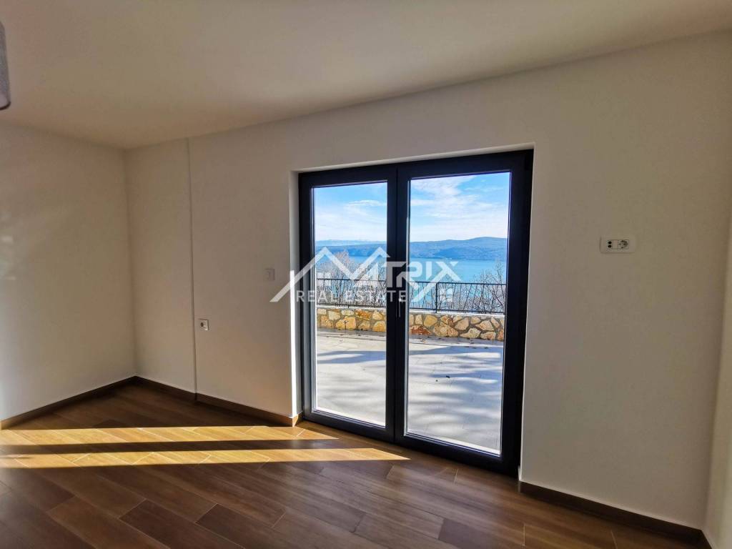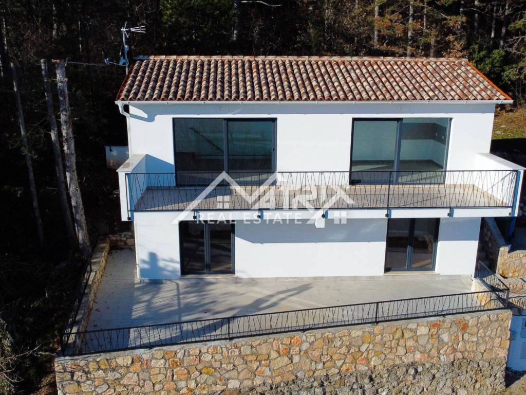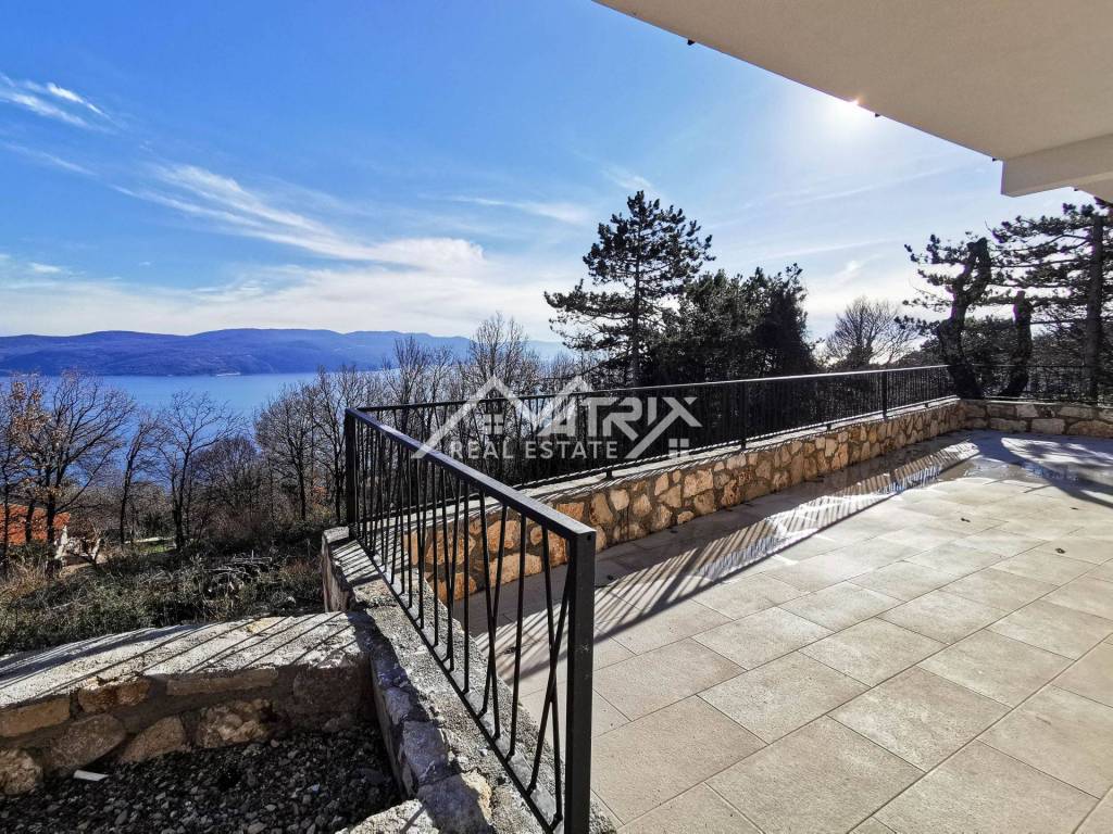 Welcome to this beautiful detached house with an open panoramic view of the sea and the island of Cres. Located in a quiet neighborhood, this house is an ideal oasis for peace and privacy. Only 700 m from the sea and 1.3 km from the beautiful beaches on the east coast of Istria, and only 20 km from Rabac, this house offers a perfect combination of luxury and idyllic Mediterranean surroundings.