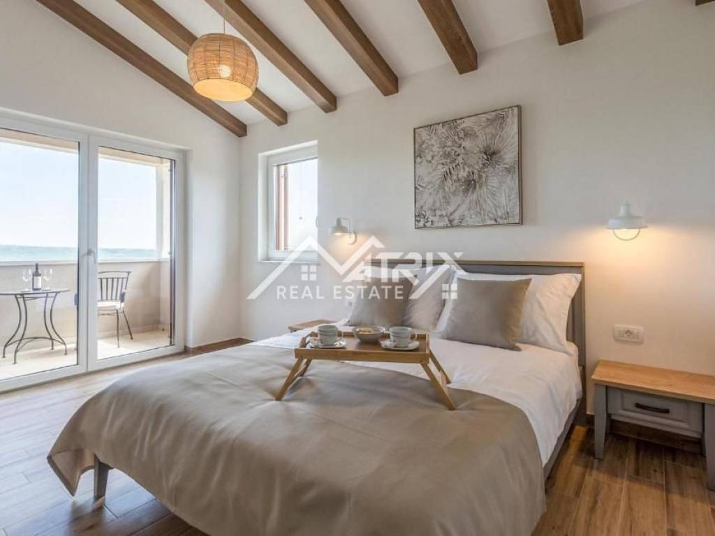 First Floor: Accessed via an internal staircase, it offers two bedrooms with en-suite bathrooms, a reading nook, and a large terrace overlooking the sea and idyllic countryside.