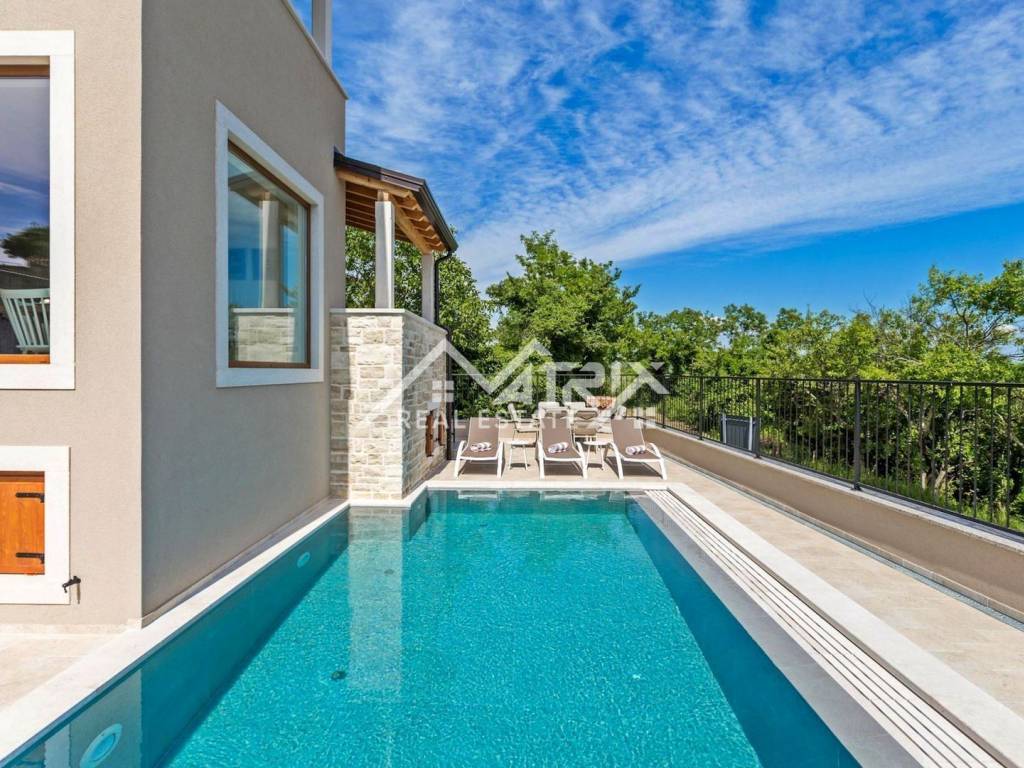 Surrounded by historic estates once owned by local landowners, the villa exudes the spirit of authentic Istria. Panoramic views stretch across the sea, green hills, and the Mirna River valley.