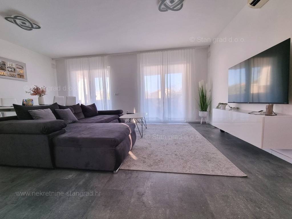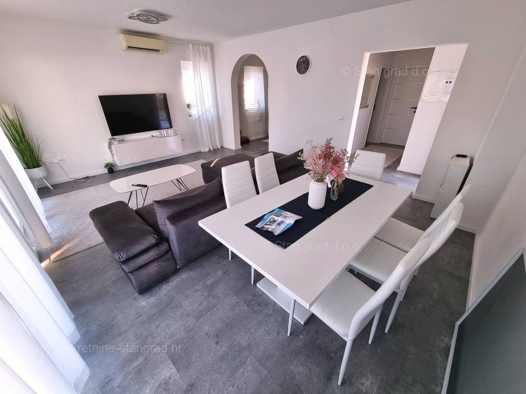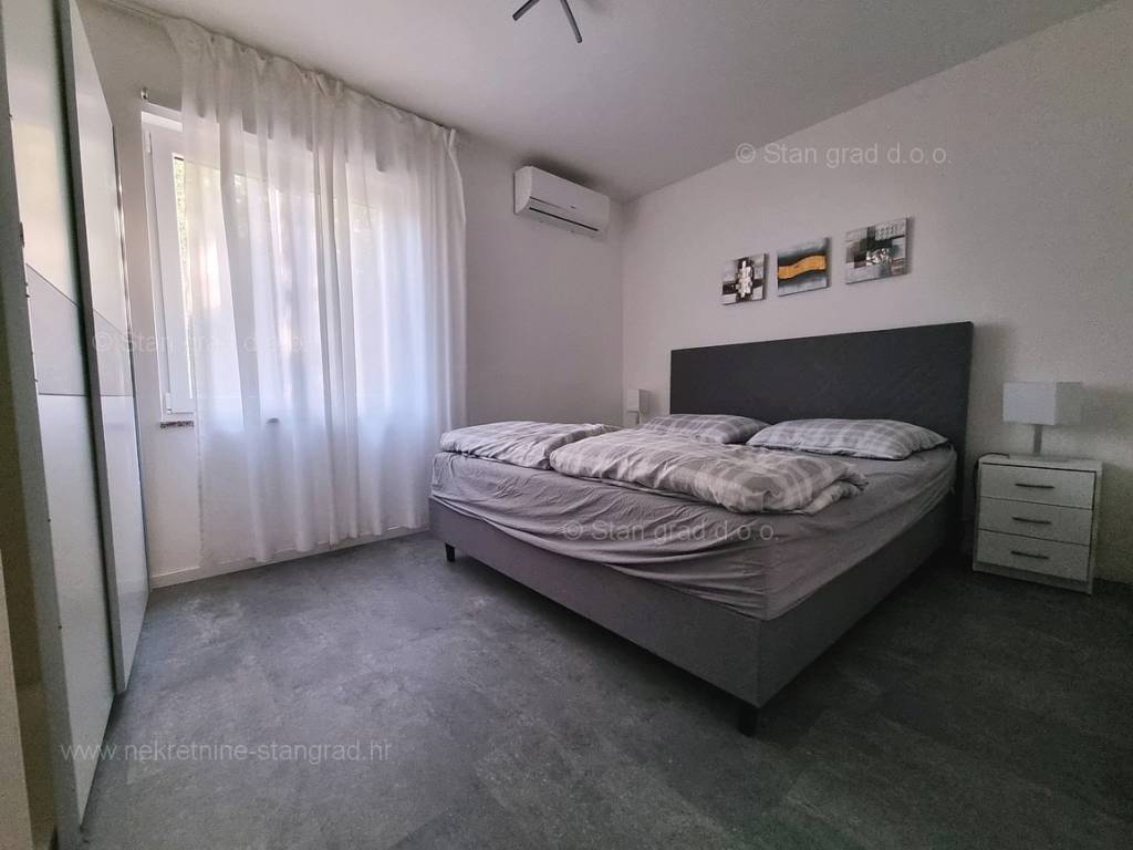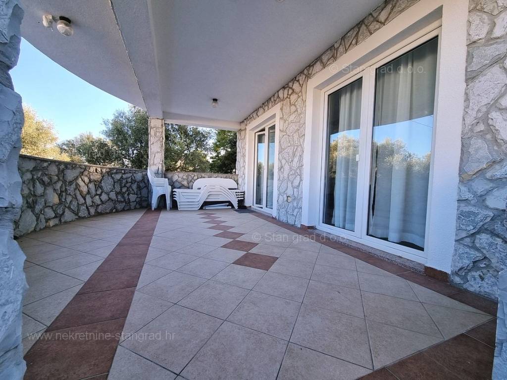 Dall'eccellente offerta immobiliare dell'agenzia Stan Grad Immobilien spicca un bellissimo appartamento nella desiderabile e pregiata destinazione costiera adriatica, l'isola di Krk. Questo appartamento si trova in un incantevole villaggio in una posizione privilegiata non lontano dal mare e dalla città di Krk. In natura, è un appartamento a un piano molto spazioso e confortevole. In bella palazzina di buone finiture, l'appartamento è situato al piano terra. La superficie totale di questo appartamento è di 84 m2. All'interno dell'area citata si trovano soggiorno e cucina, 2 camere da letto, bagno e terrazzo. L'interno dell'immobile è particolarmente curato e completamente attrezzato con i dispositivi tecnici necessari e mobili di alta qualità. È importante premettere che la proprietà di questa proprietà comprende un giardino paesaggistico con piscina e zona solarium. Il proprietario dell'appartamento avrà a disposizione un posto auto. In aggiunta a quanto sopra va notato che l'appartamento è orientato in modo tale da offrire una bella vista sul bellissimo paesaggio costiero e sugli immediati dintorni dell'insediamento. L'appartamento in questione è di proprietà di un obbligo fisico e al momento del trasferimento di proprietà è soggetto al calcolo dell'imposta sulle vendite immobiliari nella misura del 3%. Il venditore immobiliare garantisce un rapido trasferimento dei diritti di proprietà e la corretta proprietà e documentazione tecnica. Contattaci, faremo in modo di farti sentire la sicurezza e la soddisfazione di acquistare un immobile. Se decidi di acquistare un immobile da noi, il team professionale e amichevole della nostra agenzia sarà a tua disposizione per tutte le azioni amministrative relative al trasferimento della proprietà dell'immobile e dei relativi conti a tuo nome.