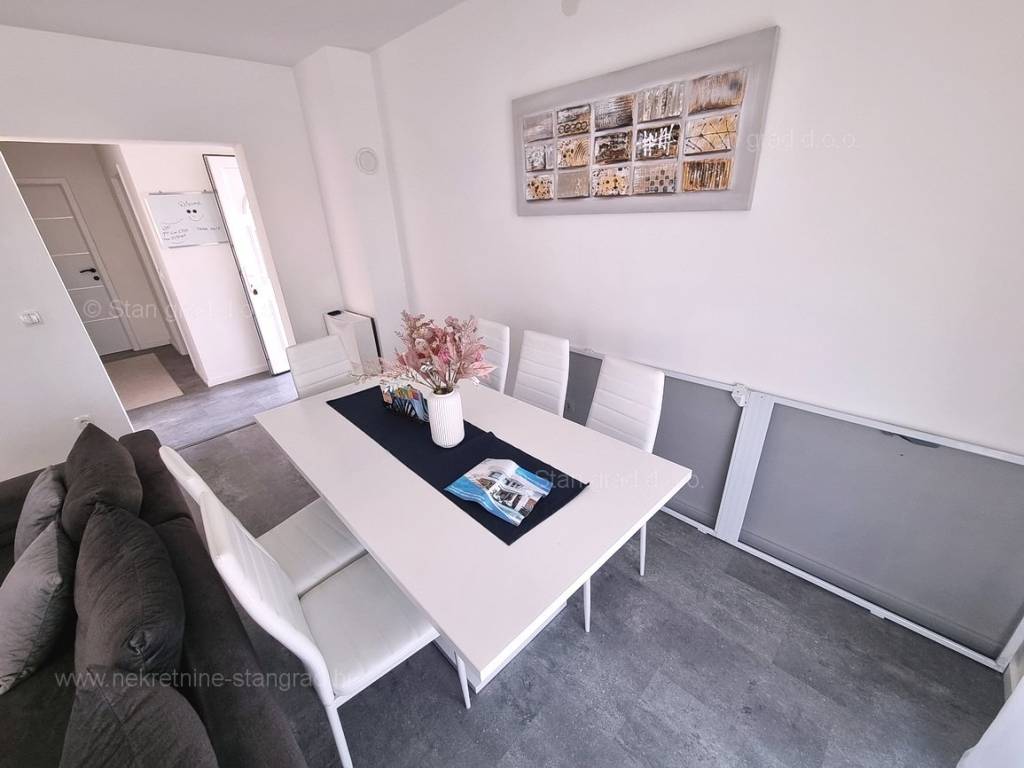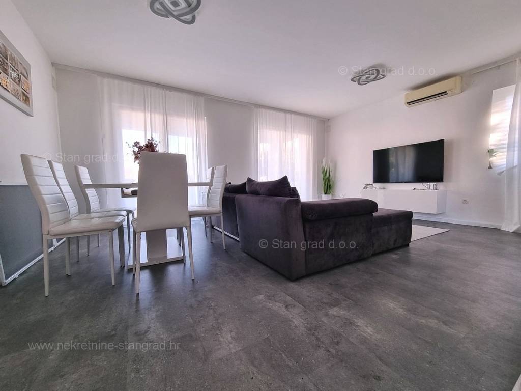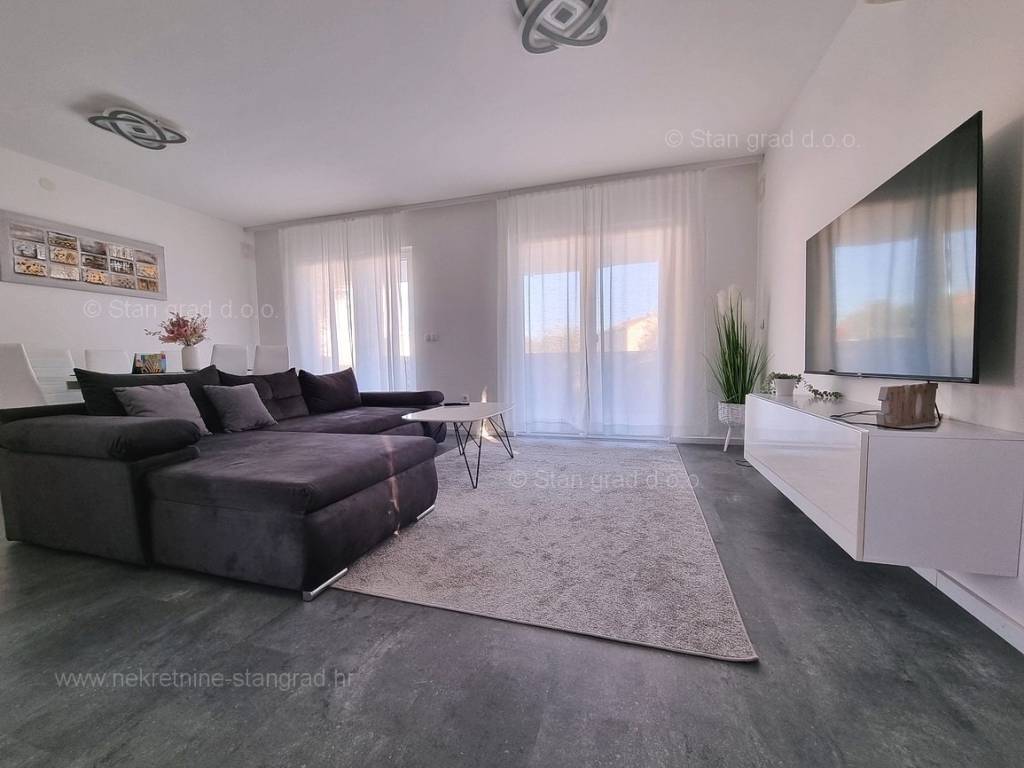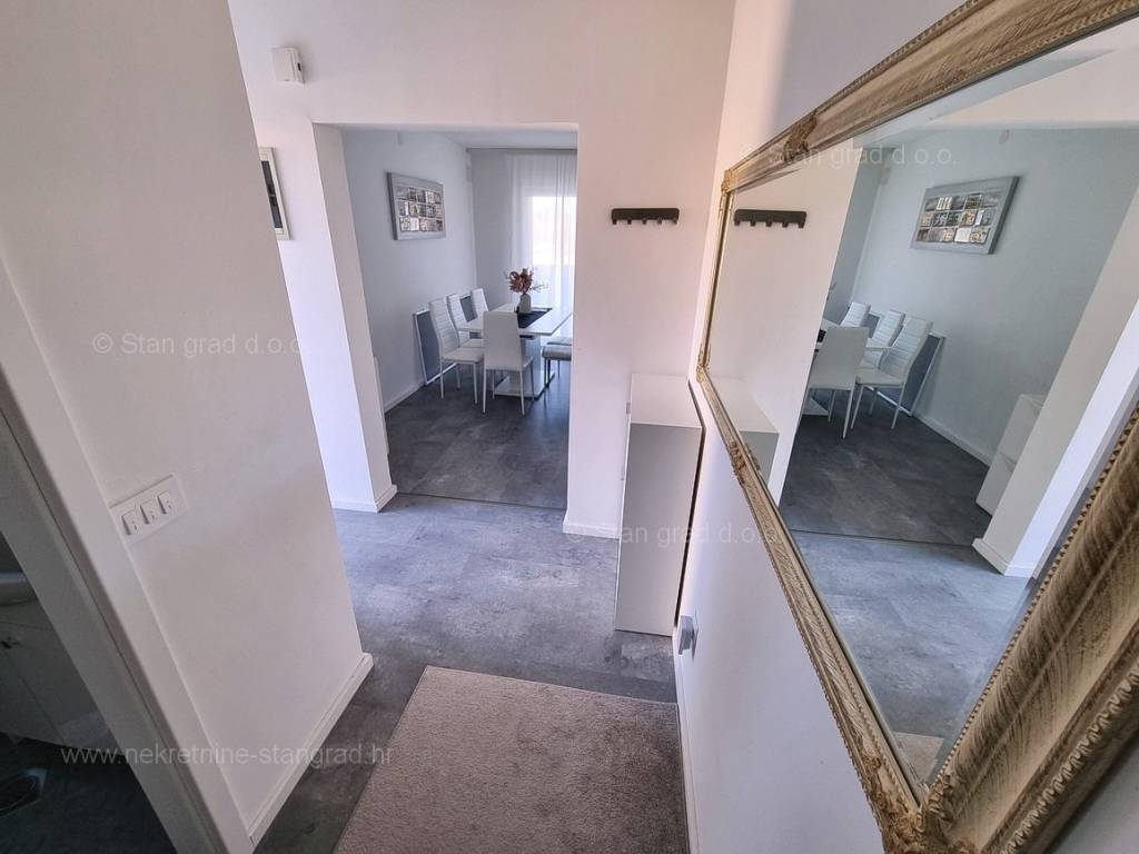 Dall'eccellente offerta immobiliare dell'agenzia Stan Grad Immobilien spicca un bellissimo appartamento nella desiderabile e pregiata destinazione costiera adriatica, l'isola di Krk. Questo appartamento si trova in un incantevole villaggio in una posizione privilegiata non lontano dal mare e dalla città di Krk. In natura, è un appartamento a un piano molto spazioso e confortevole. In bella palazzina di buone finiture, l'appartamento è situato al piano terra. La superficie totale di questo appartamento è di 84 m2. All'interno dell'area citata si trovano soggiorno e cucina, 2 camere da letto, bagno e terrazzo. L'interno dell'immobile è particolarmente curato e completamente attrezzato con i dispositivi tecnici necessari e mobili di alta qualità. È importante premettere che la proprietà di questa proprietà comprende un giardino paesaggistico con piscina e zona solarium. Il proprietario dell'appartamento avrà a disposizione un posto auto. In aggiunta a quanto sopra va notato che l'appartamento è orientato in modo tale da offrire una bella vista sul bellissimo paesaggio costiero e sugli immediati dintorni dell'insediamento. L'appartamento in questione è di proprietà di un obbligo fisico e al momento del trasferimento di proprietà è soggetto al calcolo dell'imposta sulle vendite immobiliari nella misura del 3%. Il venditore immobiliare garantisce un rapido trasferimento dei diritti di proprietà e la corretta proprietà e documentazione tecnica. Contattaci, faremo in modo di farti sentire la sicurezza e la soddisfazione di acquistare un immobile. Se decidi di acquistare un immobile da noi, il team professionale e amichevole della nostra agenzia sarà a tua disposizione per tutte le azioni amministrative relative al trasferimento della proprietà dell'immobile e dei relativi conti a tuo nome.