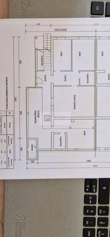 The property includes three private parking spaces with a total area of 95 m².
