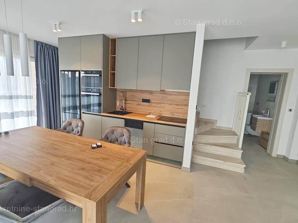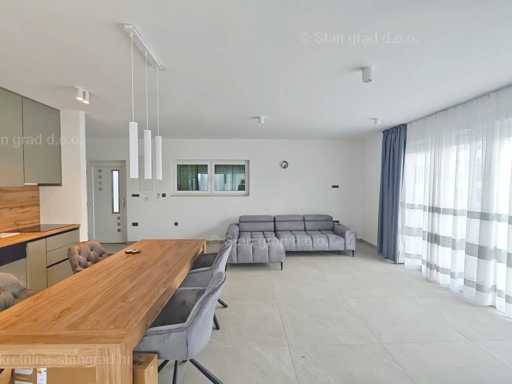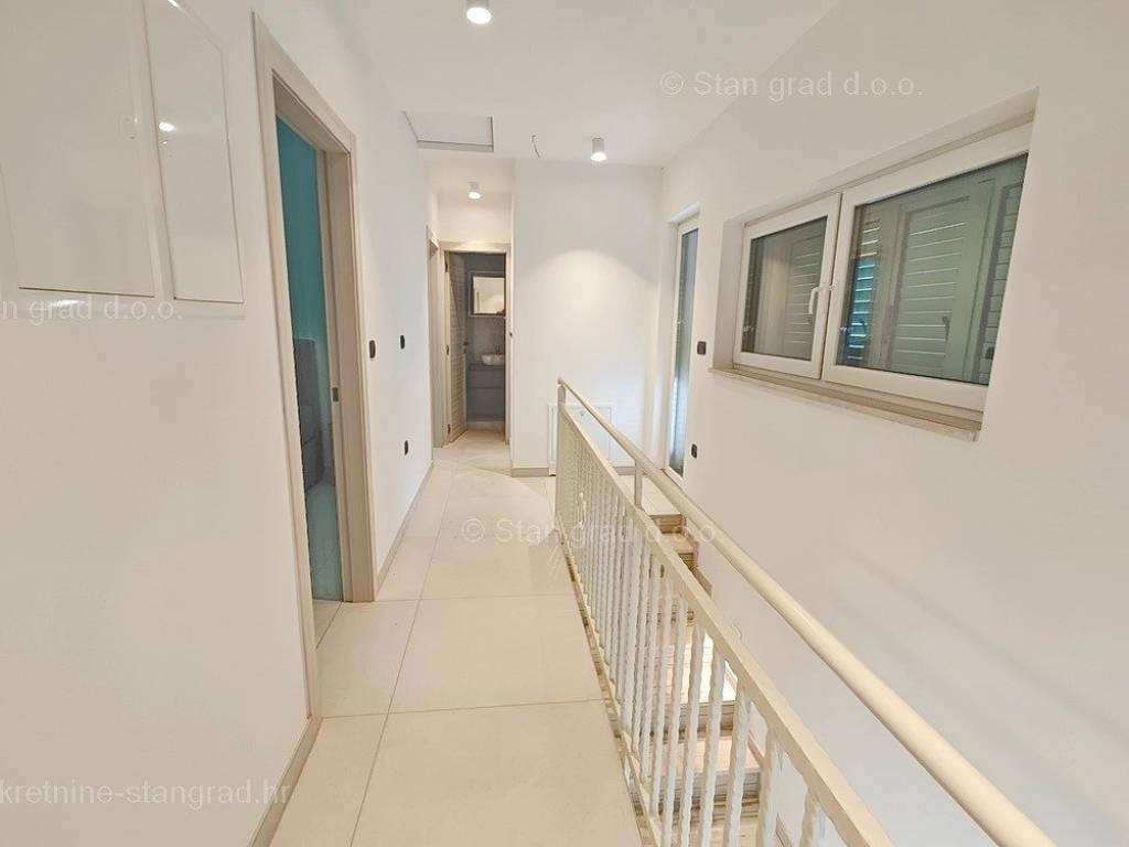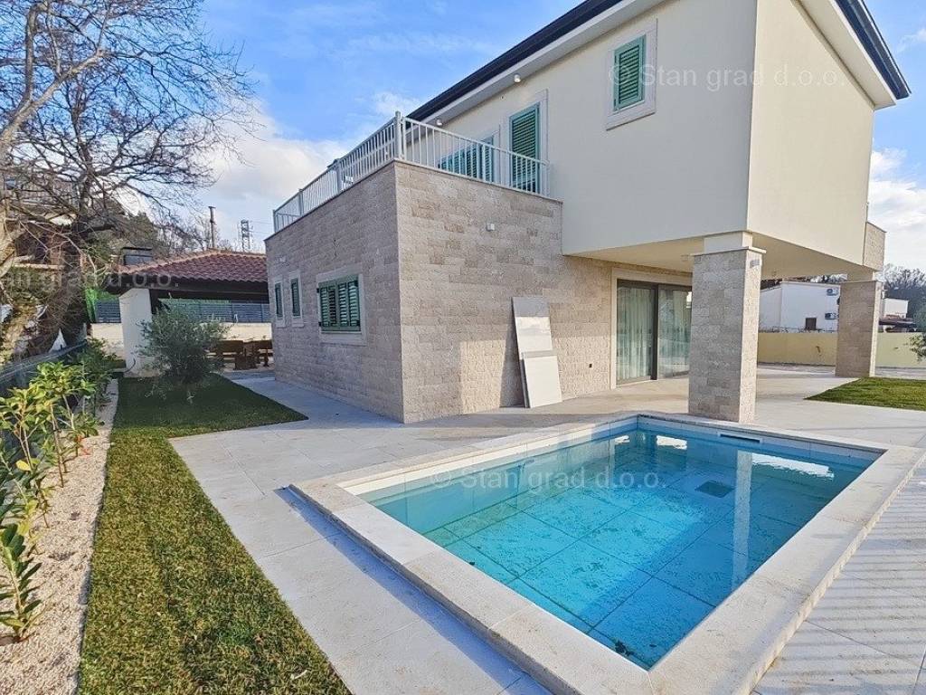 Nell'offerta immobiliare dell'agenzia Stan Grad Immobilien sulla costa croata, sull'isola di Krk, si trova una casa molto attraente, perfetta per un soggiorno turistico e una vacanza o per vivere sulla costa del Mare Adriatico. Questa casa si trova in una posizione tranquilla vicino alla cittadina costiera di Malinska, non troppo lontano dal mare. Strutturalmente parlando, questa è una casa a un piano. La casa di costruzione moderna è composta da uno spazio distribuito su un totale di 2 piani. L'immobile si estende su una superficie totale di 140 mq. Nell'area menzionata si trovano al piano terra un ingresso, una camera da letto con il proprio bagno, un wc, una dispensa, una cucina con sala da pranzo e un soggiorno con accesso al giardino, e al primo piano ci sono 3 camere da letto di cui una con il proprio bagno, poi 2 terrazzi e ulteriore bagno. La proprietà è completamente attrezzata con mobili moderni e attrezzature tecniche moderne e di alta qualità. Il valore aggiunto dell'intera struttura è dato dal giardino con piscina e solarium. L'ampio giardino dell'immobile descritto è dotato di comodo parcheggio per diversi veicoli. Oltre alle caratteristiche precedenti è importante dire che la casa gode di una bellissima vista sul mare e sulla costa. Questo immobile è soggetto ad IVA. Il venditore di questa casa garantisce una documentazione completa e ordinata e un semplice trasferimento della proprietà all'acquirente. Vi aspettiamo cordialmente all'indirizzo dell'ufficio sull'isola di Krk. Se decidi di acquistare un immobile da noi, il team professionale e amichevole della nostra agenzia sarà a tua disposizione per tutte le azioni amministrative relative al trasferimento della proprietà dell'immobile e dei relativi conti a tuo nome.
