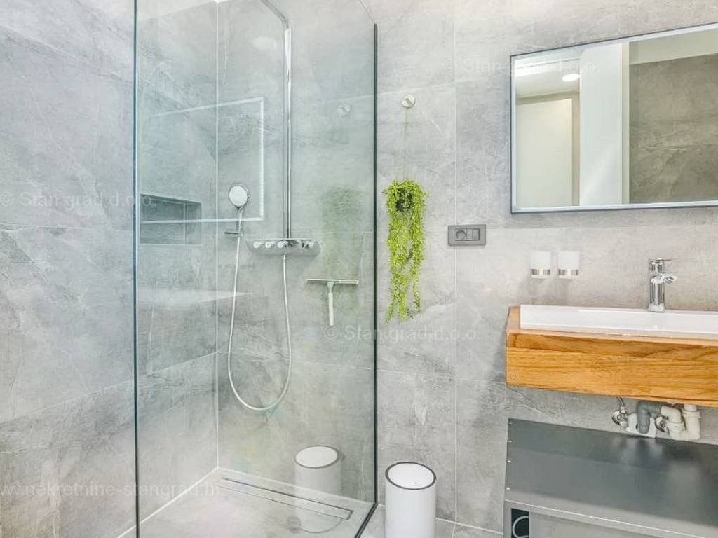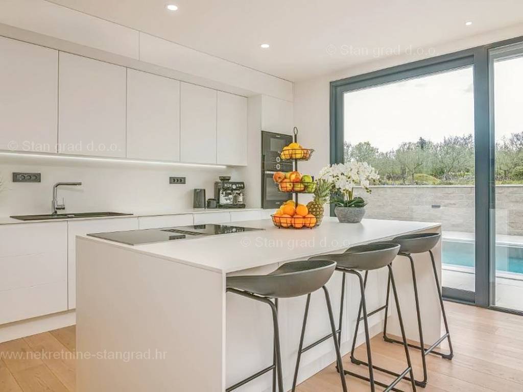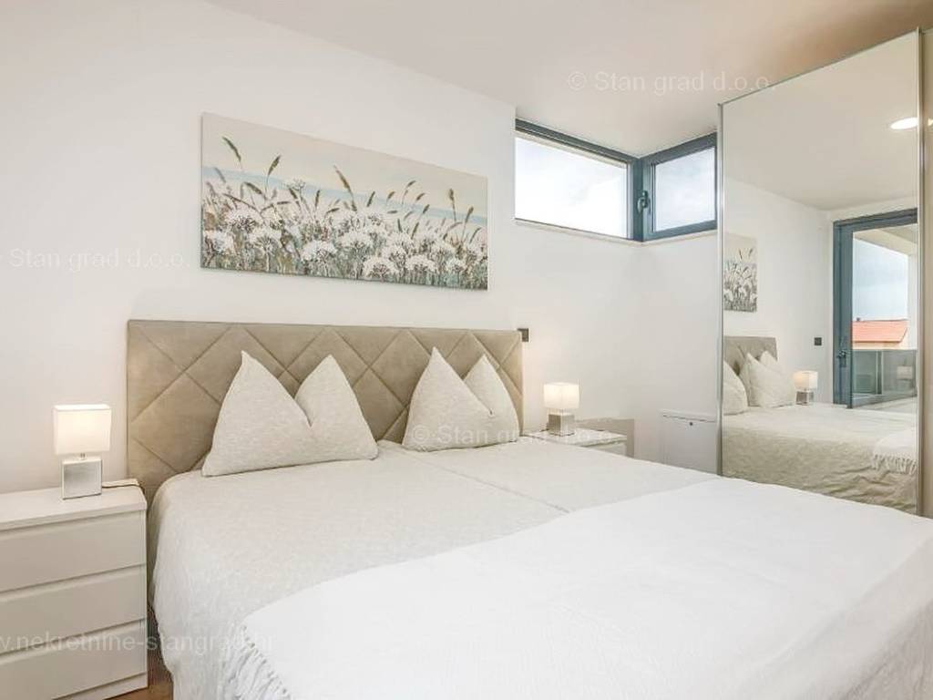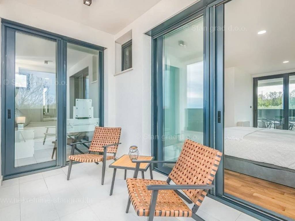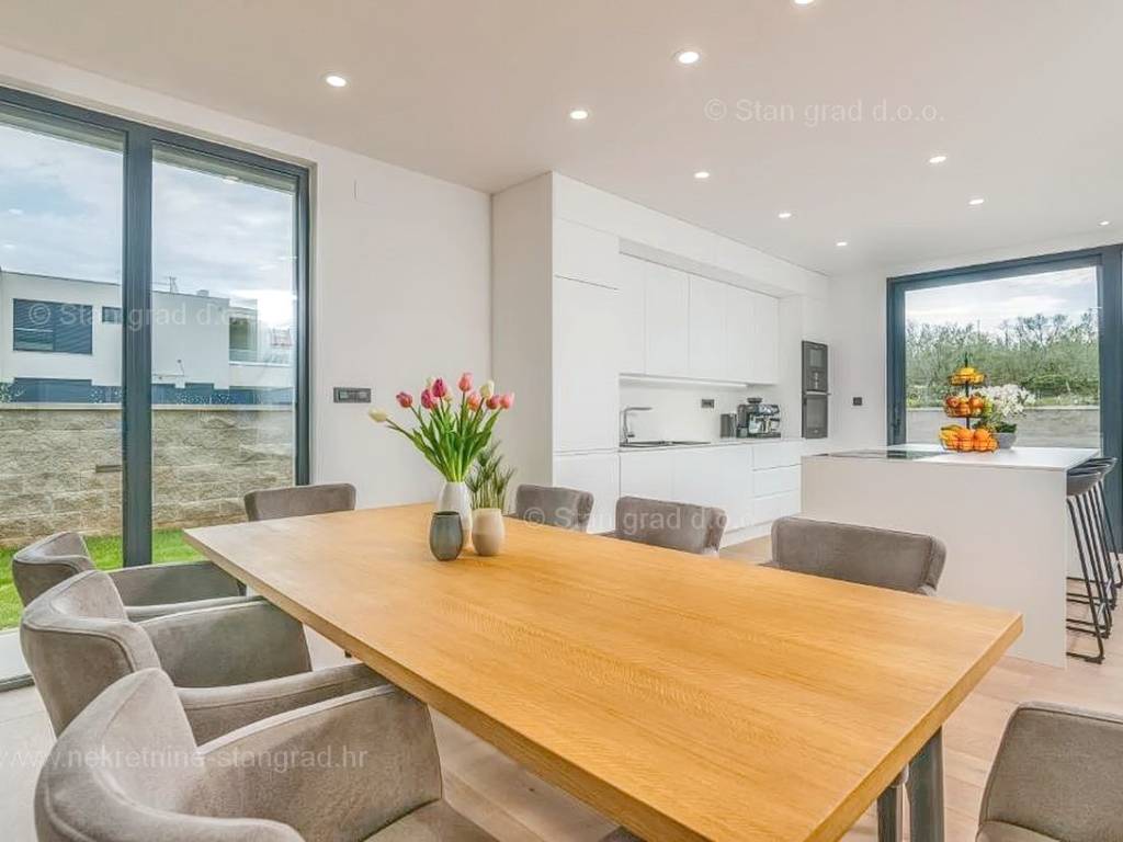 Strutturalmente, si tratta di una casa indipendente su due piani. L'immobile, di eccezionale attrattiva, è composto da due piani in totale. La superficie totale dell'immobile è di 195 m². Al piano terra si trovano l'ingresso, la centrale termica, un WC, una cucina con sala da pranzo e un soggiorno, dal quale si accede a una spaziosa terrazza. Una scala interna conduce al piano superiore, dove sono situati 3 bagni e 3 camere da letto, due delle quali hanno accesso a terrazze coperte. L'interno dell'immobile, ben mantenuto e arredato con lusso, è dotato di un ricco set di dispositivi di ultima generazione.