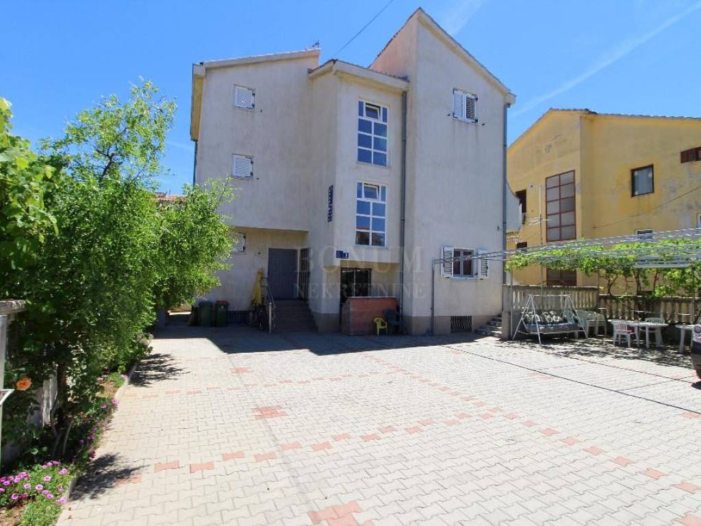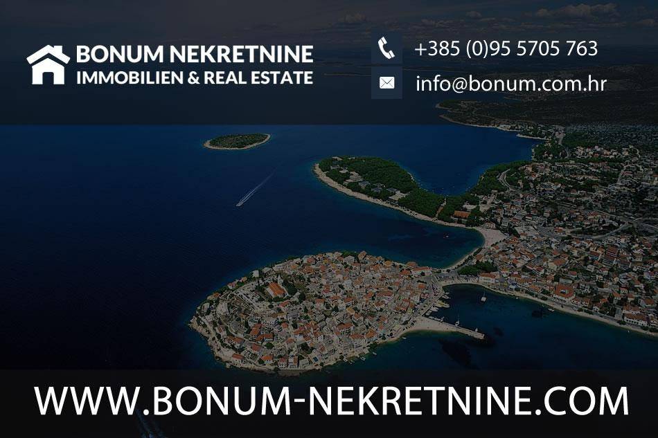 House with eight apartments for sale In Tribunj near the sea and all amenities. The house consists of a basement, ground floor, first and second floors. On the ground floor is a one bedroom apartment consisting of a living room with kitchen and dining area, which is connected to a beautifully landscaped terrace, bathroom and one bedroom. On the other side there is another two bedroom apartment, living room, kitchen, dining room, bathroom and terrace.