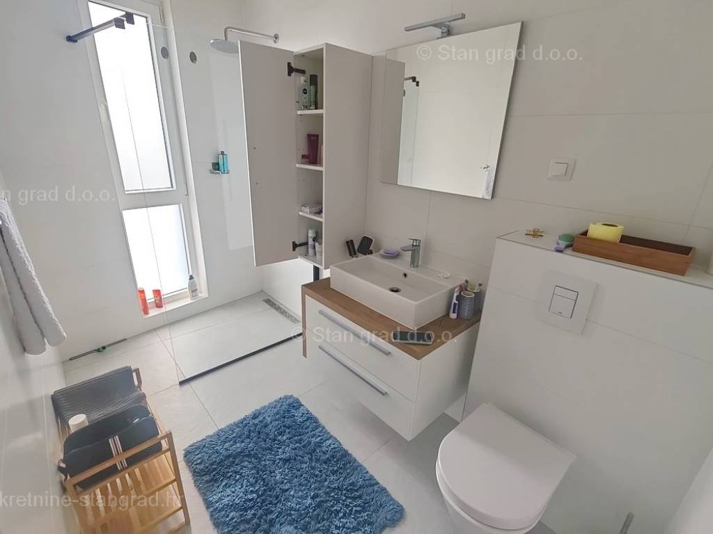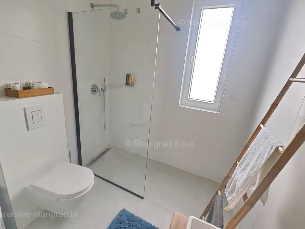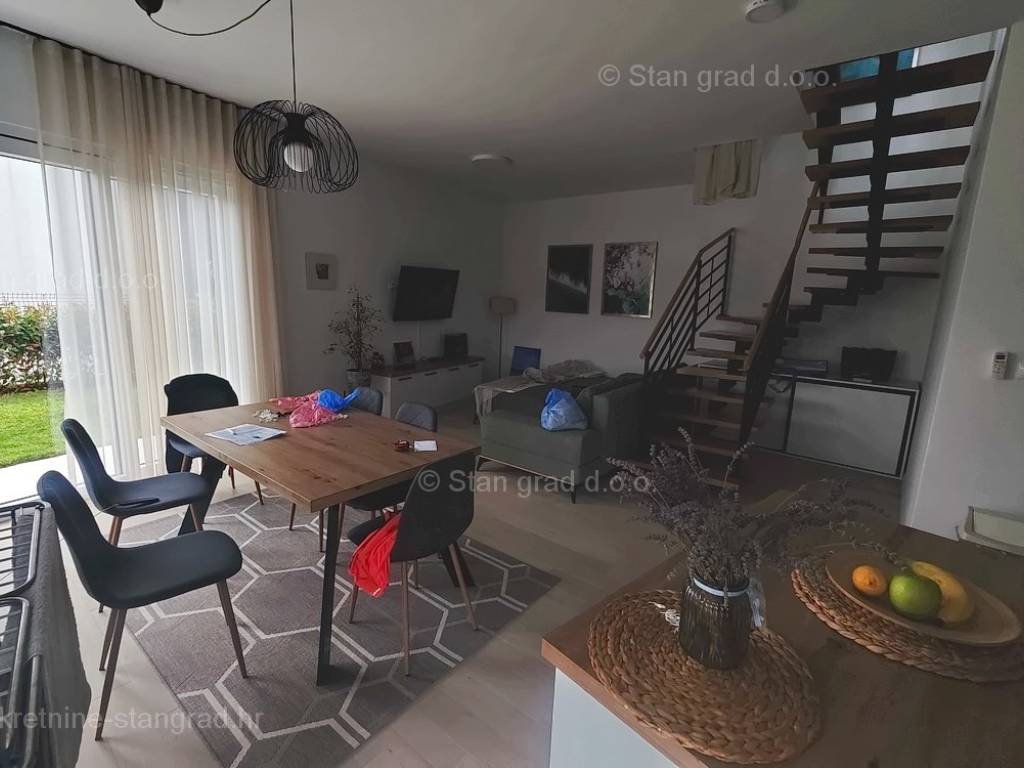 Dall'offerta della nostra agenzia di eccellenti immobili nell'Adriatico settentrionale, spicca un moderno appartamento costruito sulla ricercata regione costiera croata, l'isola di Krk. L'immobile disponibile si trova in una posizione molto attraente nelle immediate vicinanze del centro della città di Krk ed è facilmente raggiungibile a piedi dalla spiaggia. Secondo la tipologia dell'immobile si tratta di un appartamento su due piani con scala interna e ingresso al piano inferiore. In una palazzina moderna, l'appartamento si sviluppa su piano terra e primo piano. La superficie totale di questo appartamento è di 93 m2. Questa zona comprende l'ingresso, il soggiorno e la cucina con sala da pranzo e bagno al piano terra. Tramite una scala interna si accede al primo piano dove si trovano un bagno e 3 camere da letto, di cui una con vista aperta sul mare. La proprietà è completamente attrezzata con mobili moderni e attrezzature tecniche moderne e di alta qualità. È importante sottolineare che la proprietà dell'appartamento in questione comprende anche un giardino di 124 mq con cucina estiva e una casetta da giardino. Due auto possono essere comodamente parcheggiate nella parte attigua del giardino dell'immobile descritto. Oltre alle caratteristiche precedentemente descritte di questo immobile, segnaliamo anche l'ottimo orientamento della bella vista dell'appartamento verso i vicini dintorni urbanizzati, il mare e il paesaggio naturale. Questo appartamento è di proprietà di una persona fisica, quindi l'acquirente è tenuto a pagare l'imposta sulle vendite pari al 3% quando ne trasferisce la proprietà a suo nome. Il venditore immobiliare garantisce un rapido trasferimento dei diritti di proprietà e la corretta proprietà e documentazione tecnica. Contattaci e saremo lieti di riceverti nel nostro ufficio sull'isola di Krk. Se riponi la tua fiducia in noi, il cordiale team di agenti e personale dell'ufficio Stan Grad Immobilien sarà felice di aiutarti a trasferire la proprietà dell'immobile e la bolletta a tuo nome.