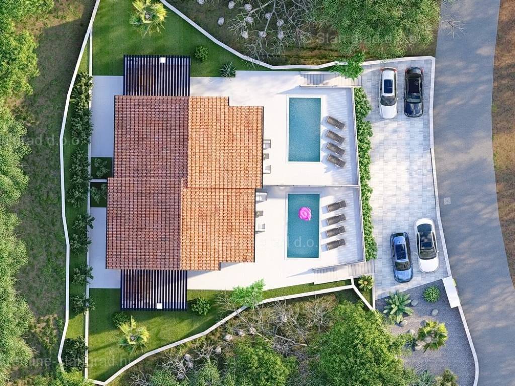 Dalla vasta selezione di immobili nell'Adriatico settentrionale, l'agenzia Stan Grad Immobilien presenta un'esclusiva villa di lusso situata nella rinomata regione turistica dell'isola di Krk. Questa elegante villa si trova in una posizione privilegiata a Malinska, vicino a tutti i servizi essenziali. Strutturalmente, è una casa bifamiliare moderna con due piani.