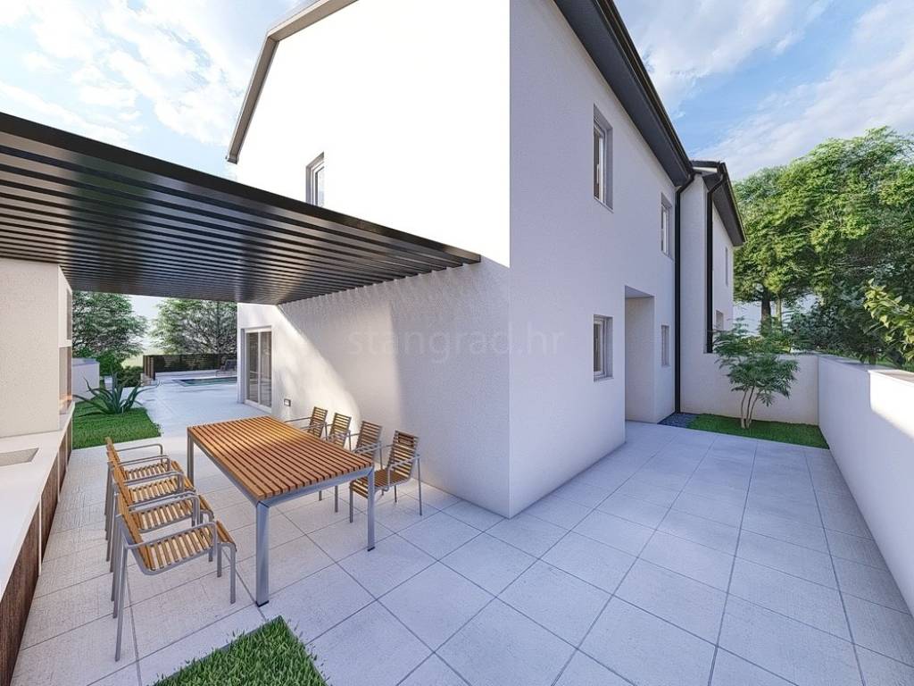 Nell'offerta immobiliare dell'agenzia Stan Grad Immobilien, nella regione del Litorale croato, sull'isola di Krk, si trova una casa molto attraente, perfetta per una vacanza turistica o per la residenza sulla costa dell'Adriatico. Questa elegante villa è situata in una posizione eccellente a Malinska, nelle immediate vicinanze di tutti i servizi necessari. Strutturalmente, si tratta di una casa bifamiliare di costruzione moderna, disposta su due piani.