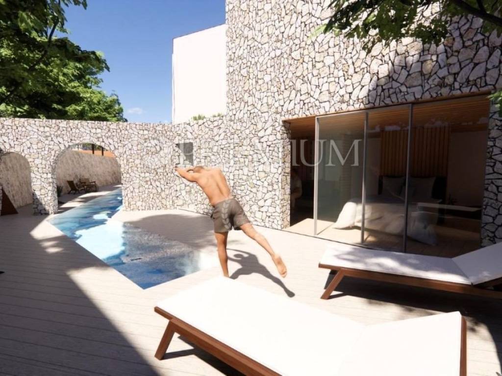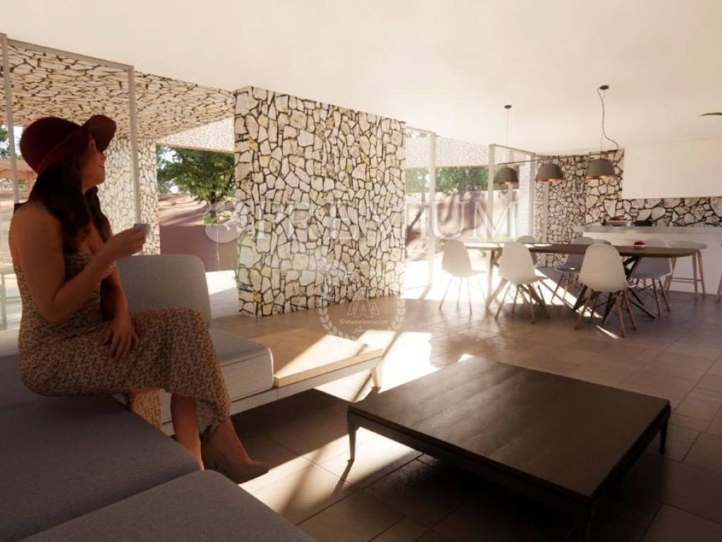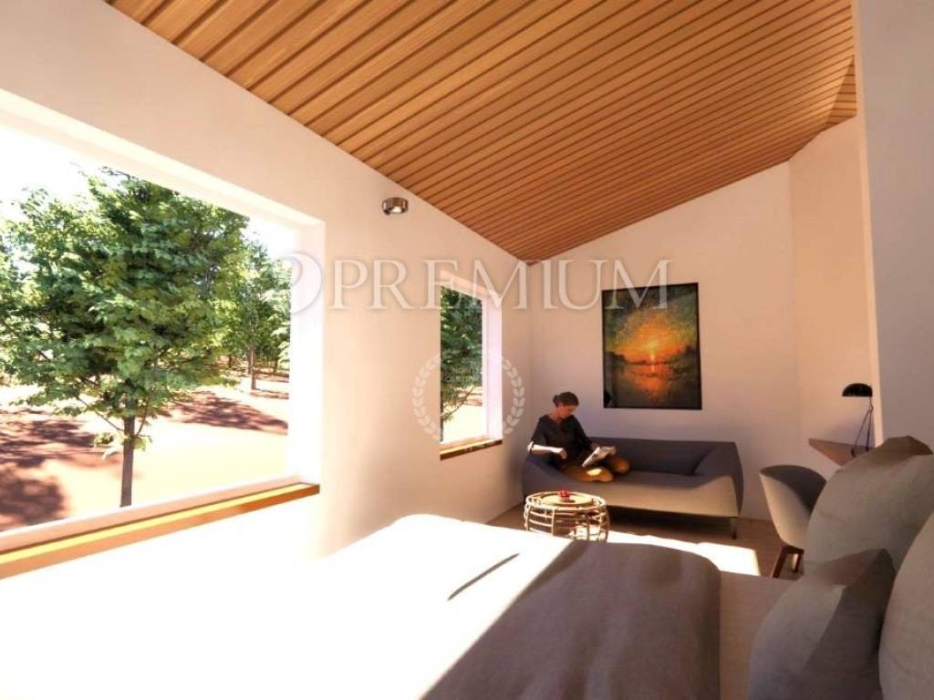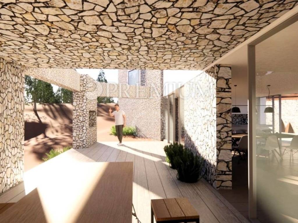 Vrbnik, periferia – in vendita villa indipendente progettata con modernità, di qualità costruttiva superiore, situata in totale privacy e tranquillità, immersa in una foresta di querce. L’edificio è di nuova costruzione (2025) e si sviluppa su due livelli – seminterrato e piano terra – per una superficie abitabile complessiva di 410 m².