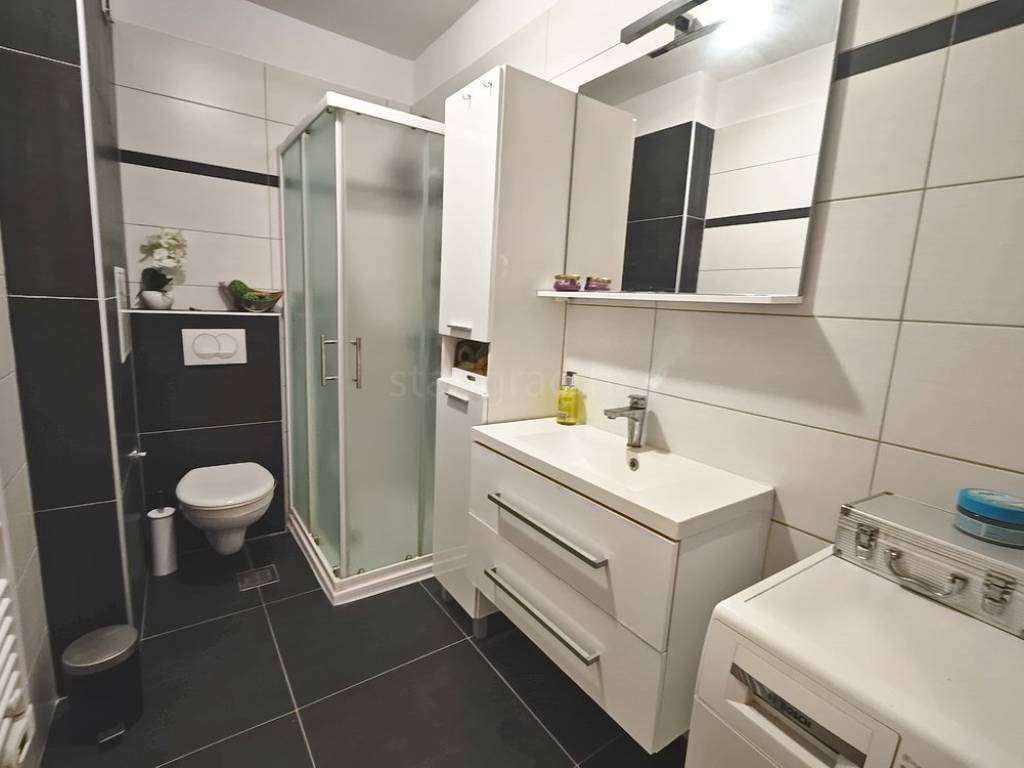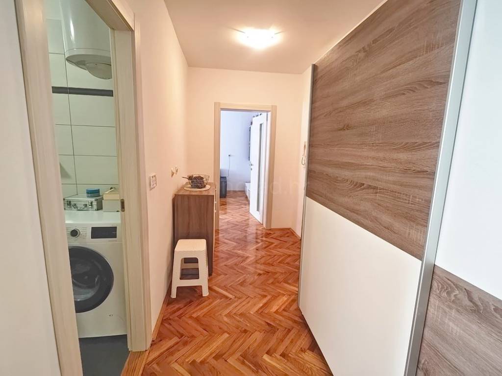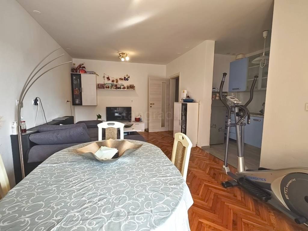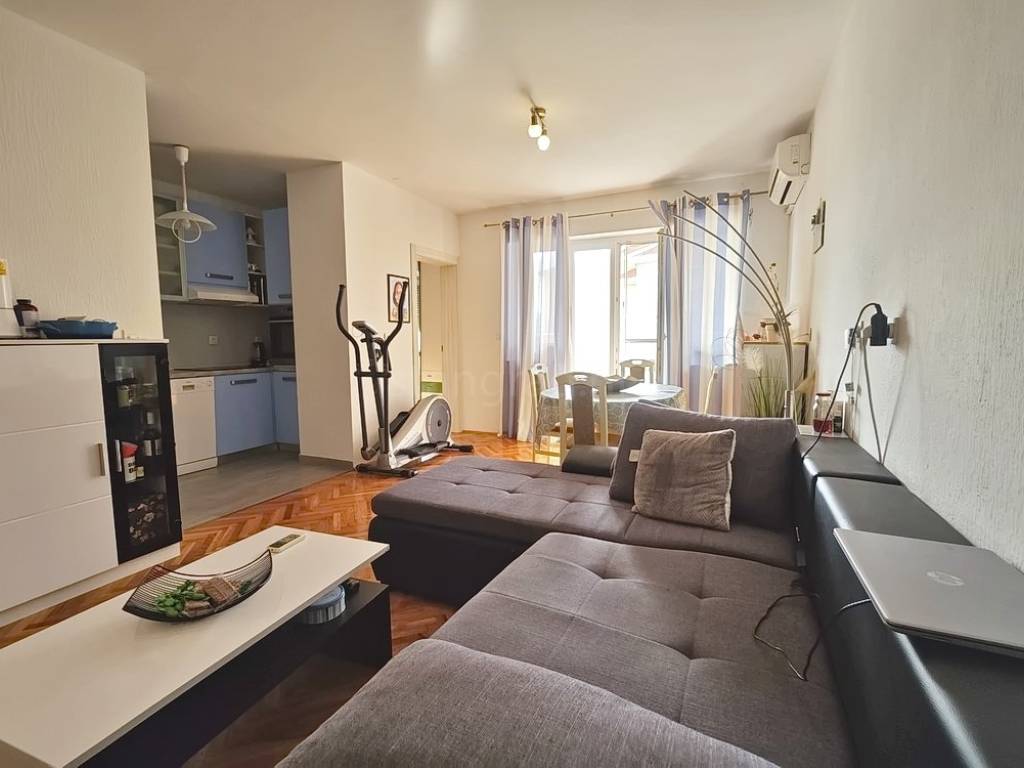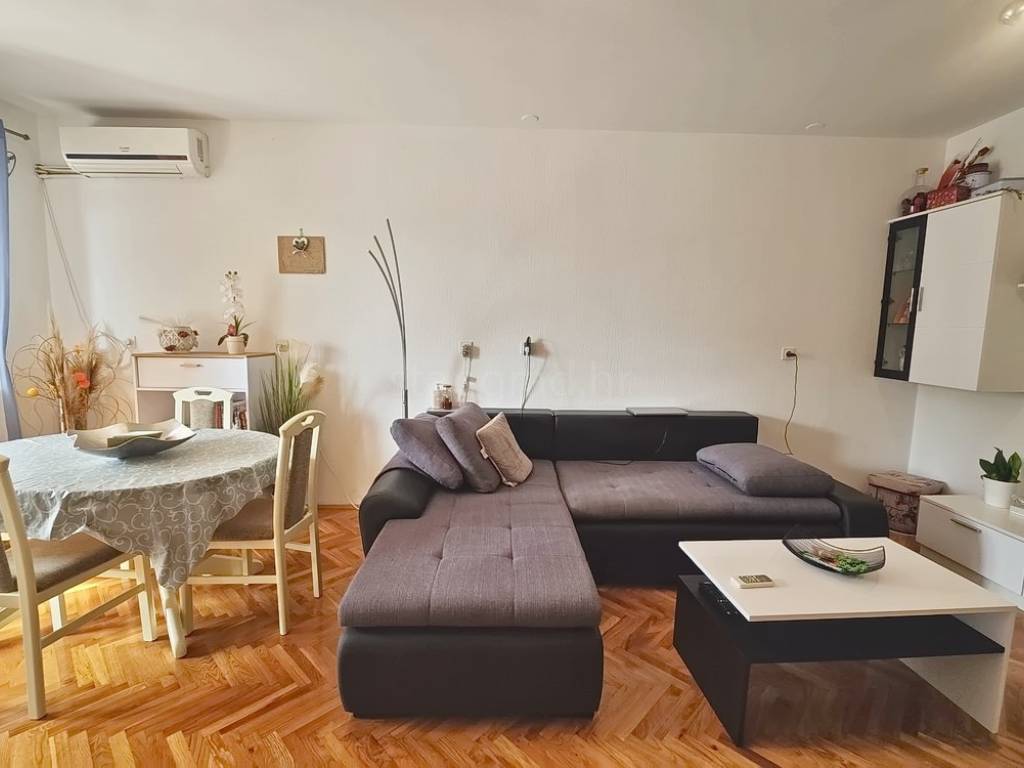 L’appartamento si trova al primo piano di un edificio di costruzione solida e si estende su una superficie totale di 74 metri quadrati. Comprende un soggiorno con cucina e zona pranzo, due camere da letto, un bagno e una terrazza. Gli interni sono ben conservati e completamente attrezzati con tutti gli elettrodomestici necessari e mobili di qualità, il che consente un immediato ingresso senza bisogno di ulteriori investimenti. L’appartamento dispone anche di un posto auto riservato.