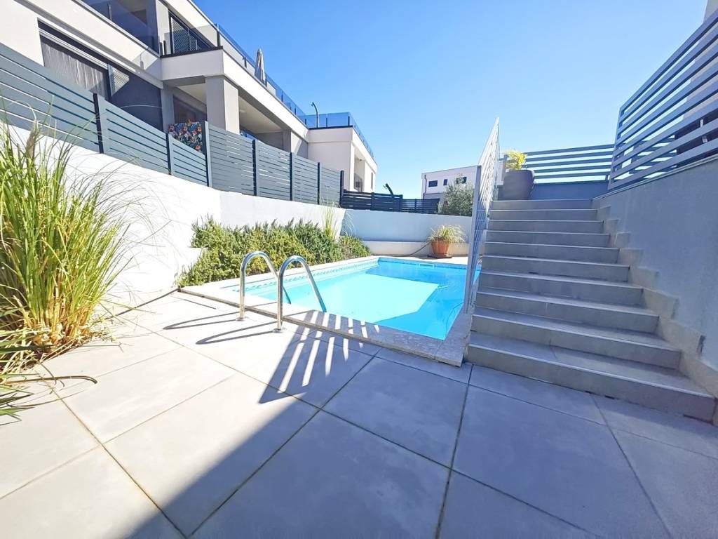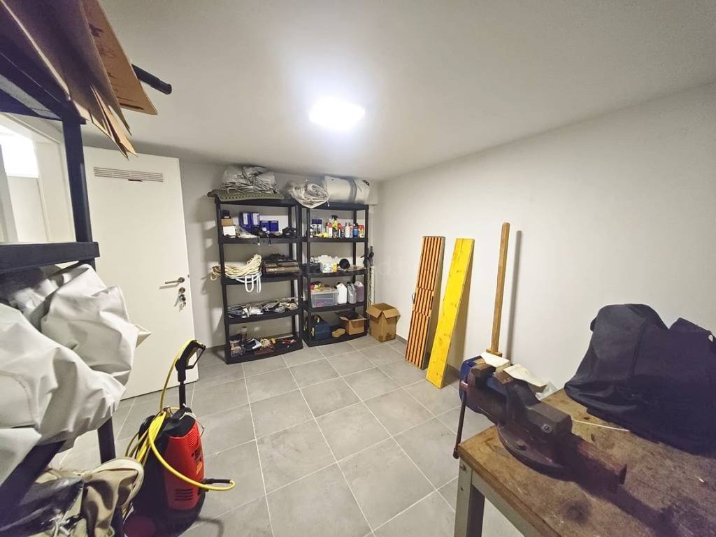 L’appartamento è disposto su un unico piano all’interno di un edificio residenziale contemporaneo e ha una superficie complessiva di 107 metri quadrati. È composto da un ingresso, un ampio soggiorno collegato alla cucina con zona pranzo, due camere da letto confortevoli, due bagni modernamente arredati, una terrazza coperta e un’ulteriore terrazza sul retro con accesso al giardino. Nel giardino ben curato si trovano una piscina e un barbecue in muratura, ideali per momenti conviviali e di relax nella privacy della propria casa. All’appartamento appartiene inoltre un locale di deposito di 12 m² situato negli spazi comuni dell’edificio.