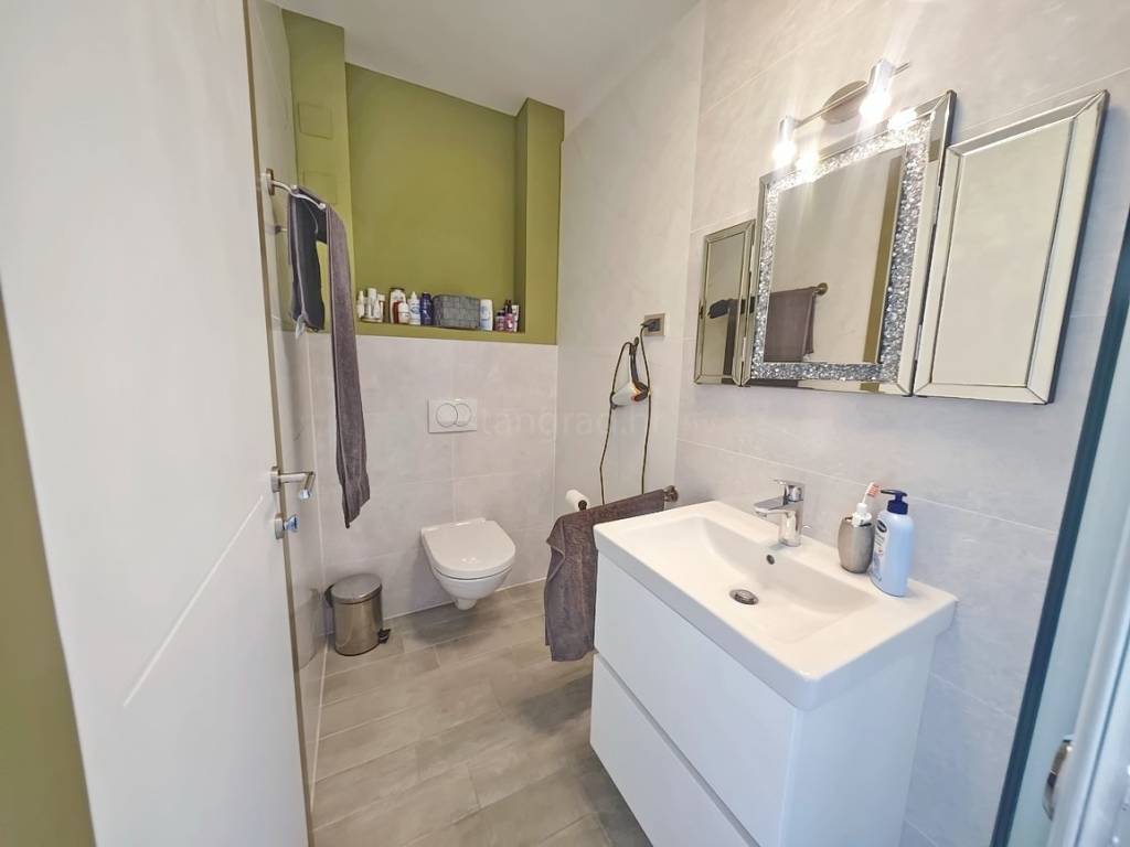Gli interni dell’appartamento si distinguono per l’alto livello di manutenzione e sono completamente arredati con mobili di qualità e dotati di moderni elettrodomestici. L’immobile dispone anche di un parcheggio privato con spazio sufficiente per due auto. Grazie alla sua ottima esposizione, l’appartamento offre una splendida vista sul mare e sulla costa, rendendo il soggiorno ancora più piacevole.