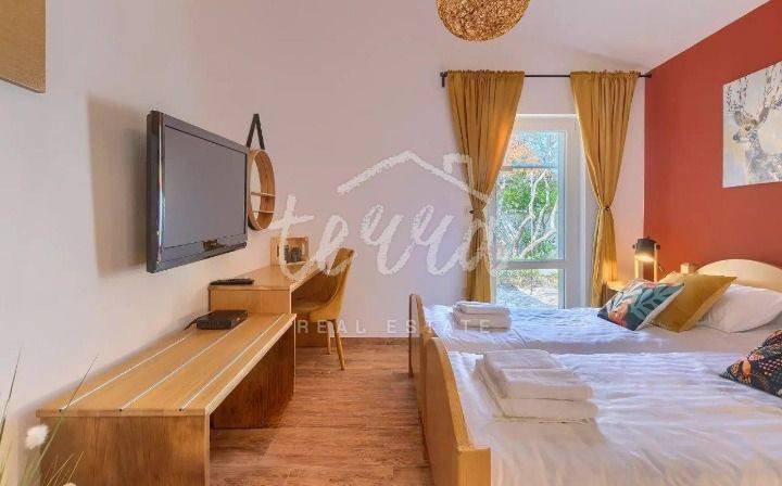 If you are looking for a charming villa that combines traditional Istrian style with all the benefits of modern housing, then this villa is the right choice for you. This beautiful ground floor house is only 700 meters from the first beach. It can accommodate up to eight people and has three comfortable bedrooms, three bathrooms, a bright and spacious living room and a fully equipped kitchen with dining area. From the living room you come out to a beautiful terrace in the garden, where you will surely spend a lot of time. In the exterior of the villa there is also a swimming pool of 24 m2 that can be heated. For additional luxury will take care of the modern sauna and jacuzzi, which are also located in the exterior of the villa. The table tennis table is located in the spacious garden and is a real guarantee for fun and socializing. Within the villa there is also a small playground for children. The villa is air conditioned and has private parking. The villa is located in a small tourist village Barbariga, on the western part of the Istrian peninsula, halfway between Rovinj and Pula. Surrounded by olive groves and untouched nature. Small, hidden, natural beaches with crystal clear water evoke a sense of freedom, privacy and intimacy. You can swim in the sea or go on a trip to discover the surroundings of charming Istrian towns and all the amenities they offer. This villa is an ideal investment in tourism.